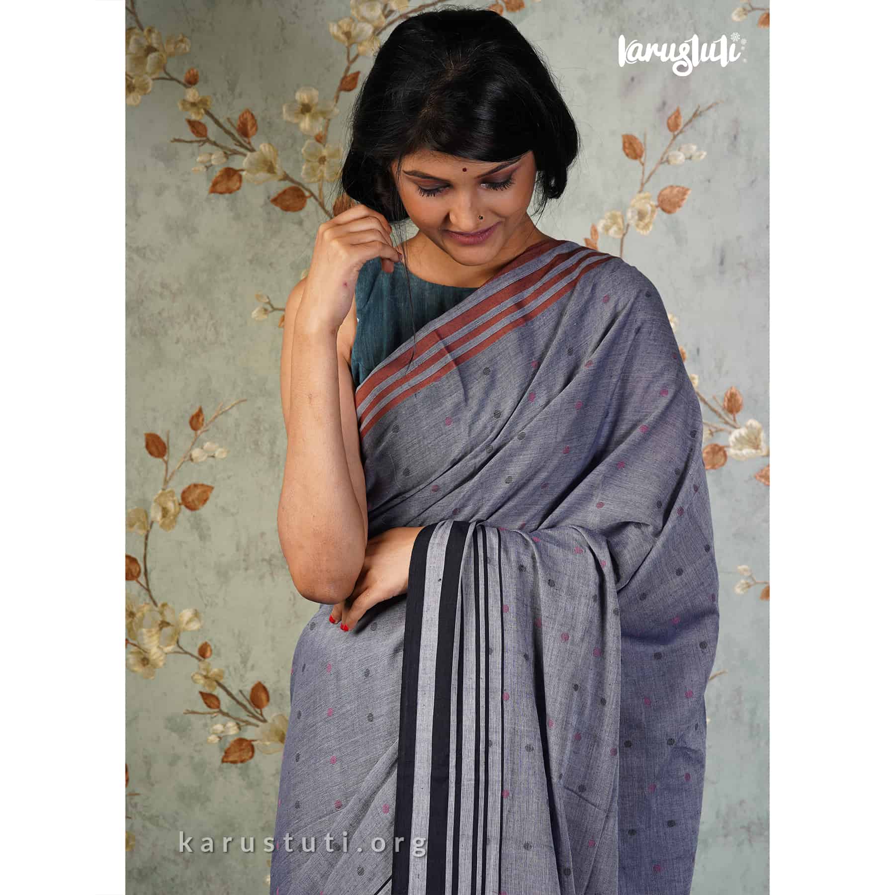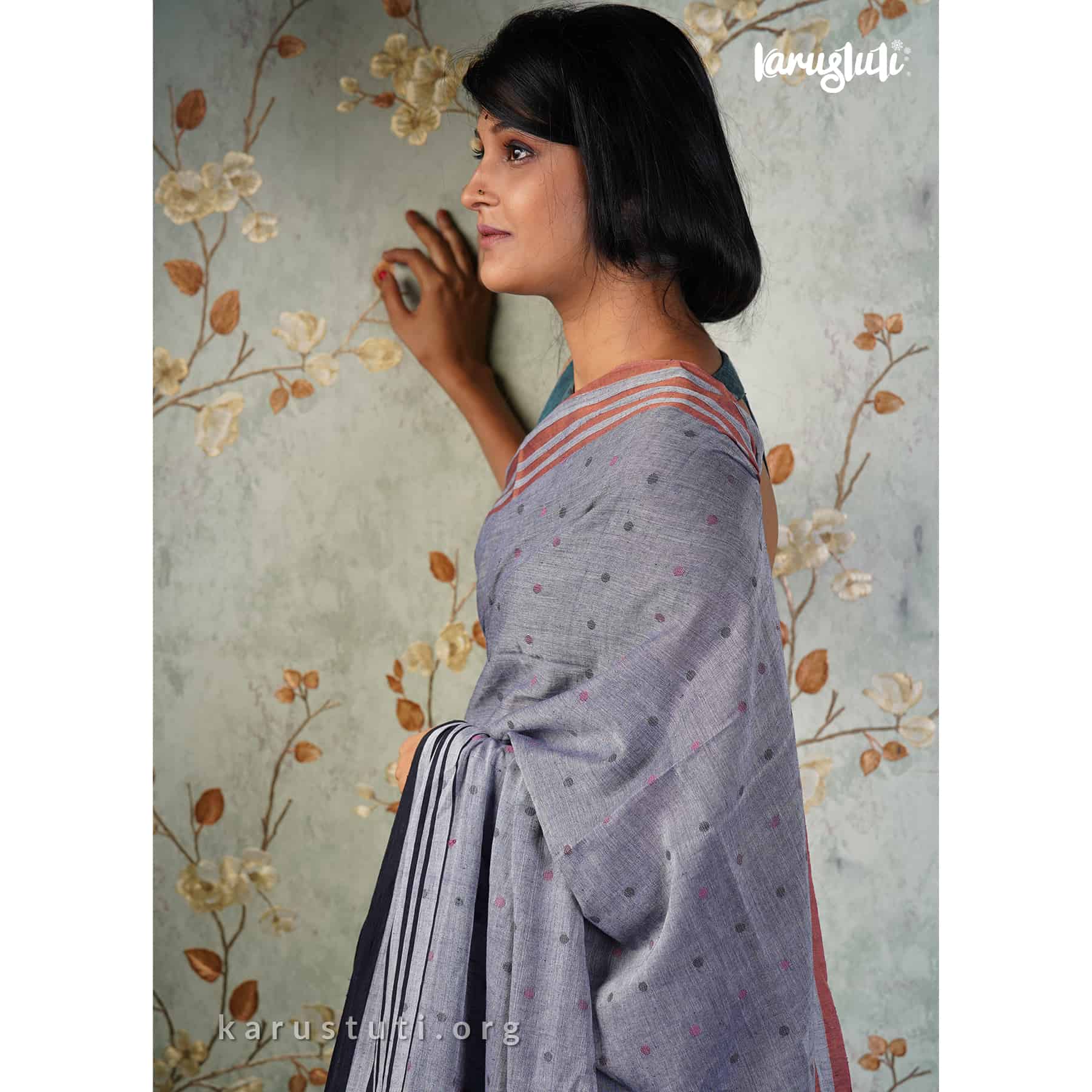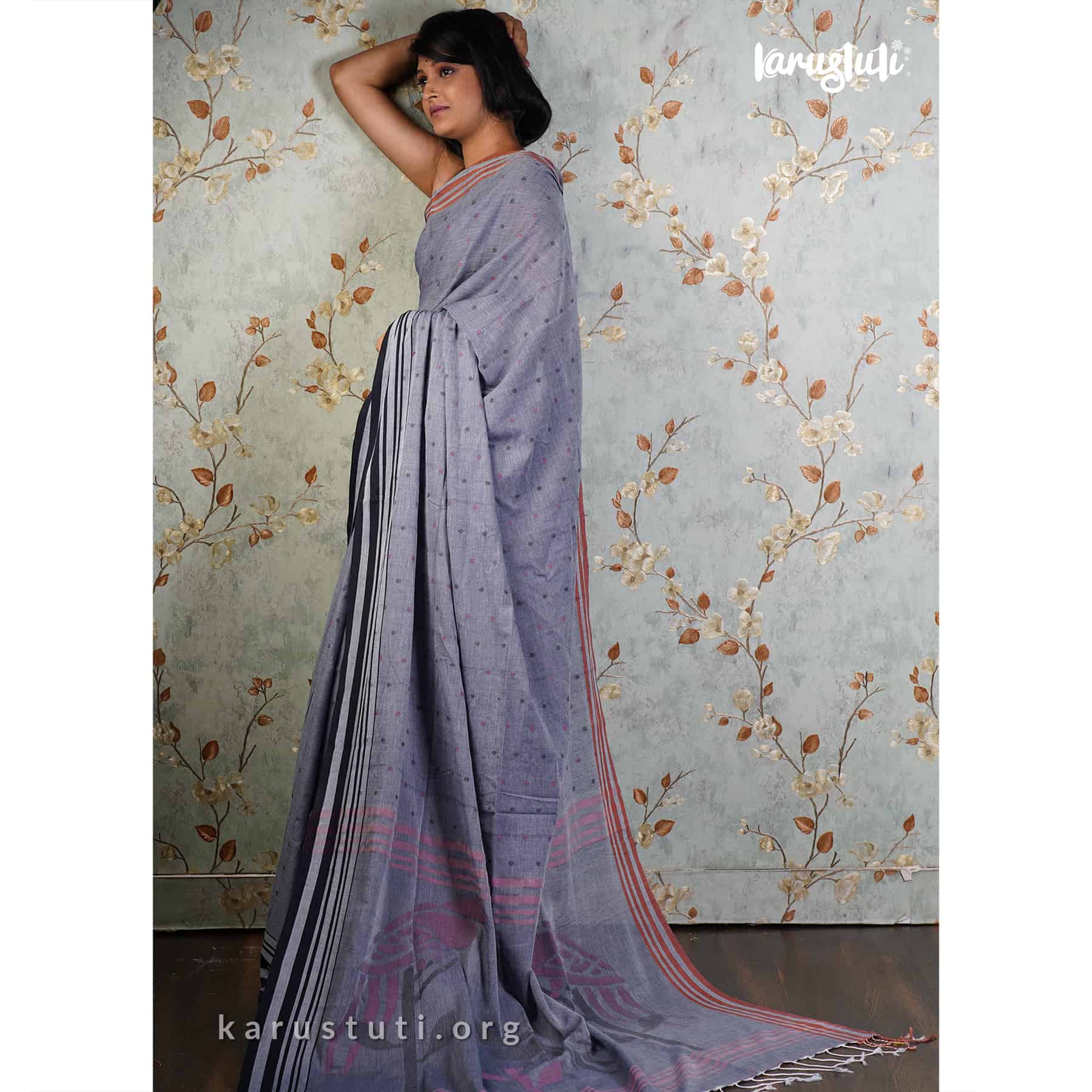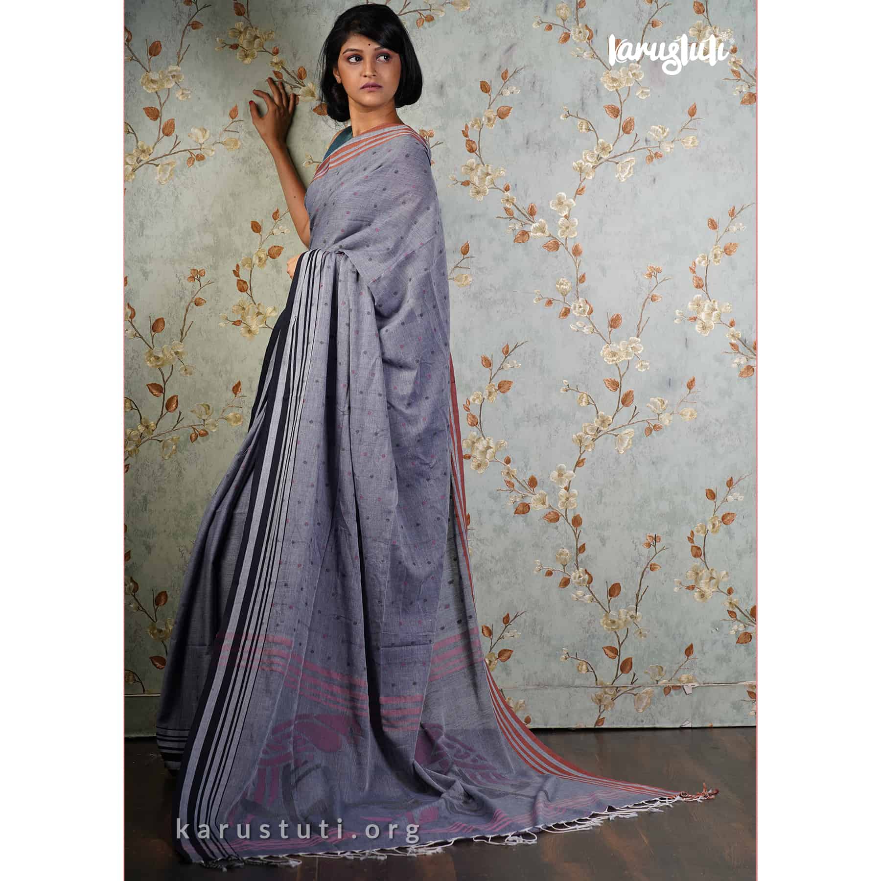 Soft handspun cotton body buta and jamdani pallu. Handmade breathable classy drape for all occasions.
