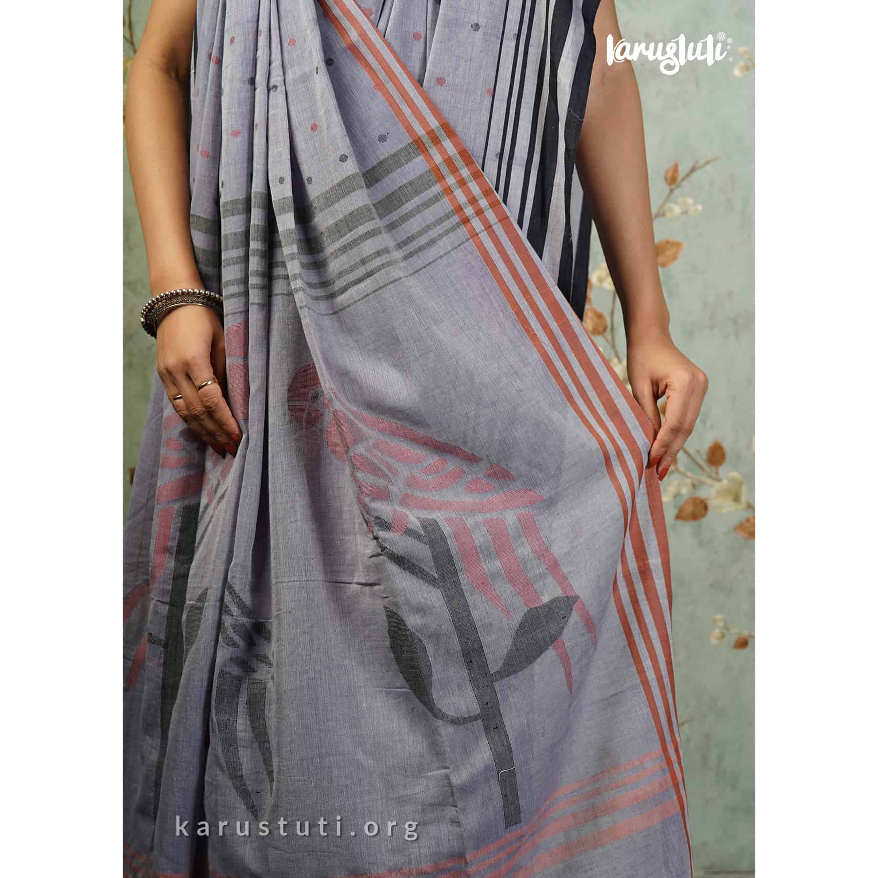Soft handspun cotton body buta and jamdani pallu. Handmade breathable classy drape for all occasions.