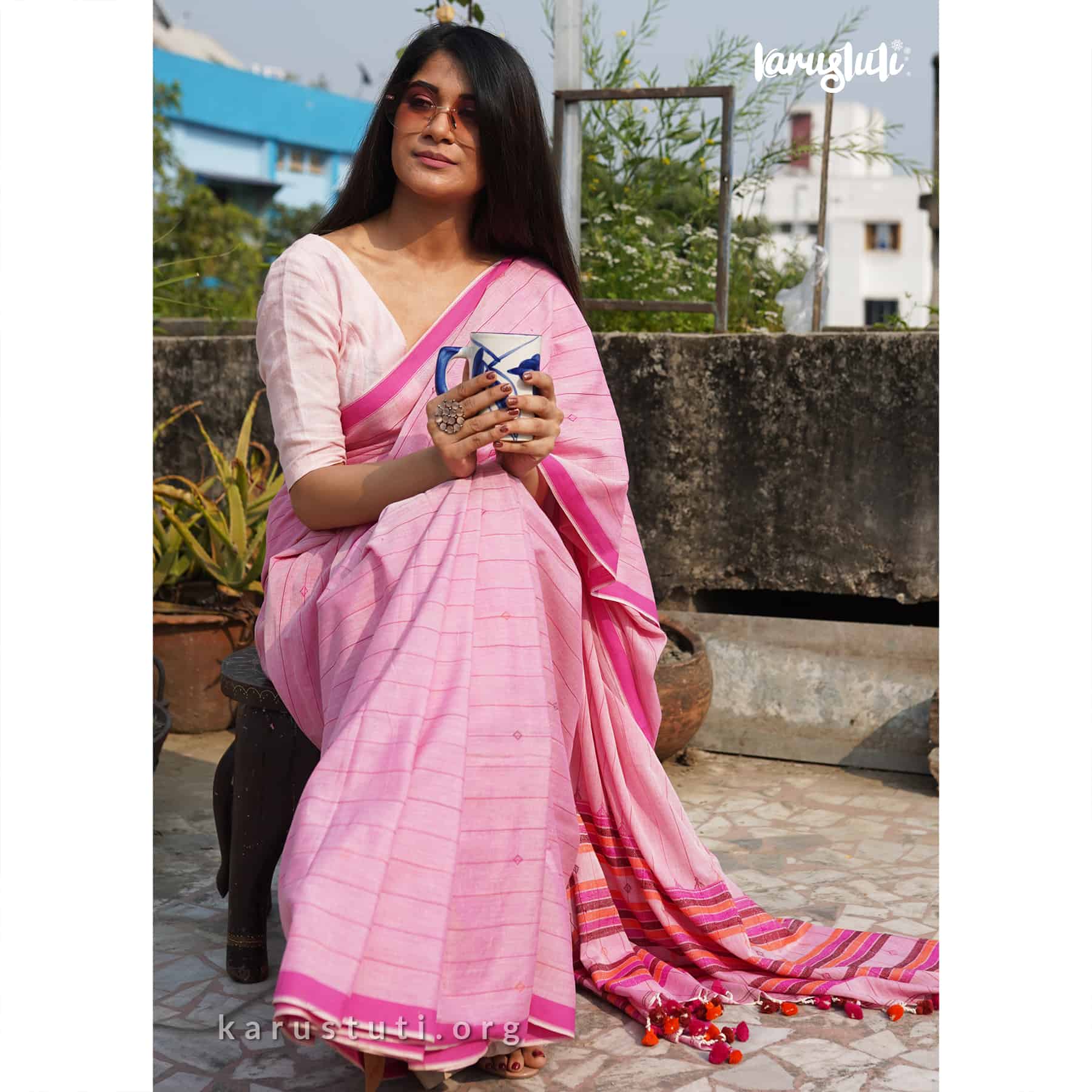 Soft handspun cotton all body and pallu has jacquard work handmade breathable classy drape for all occasions.