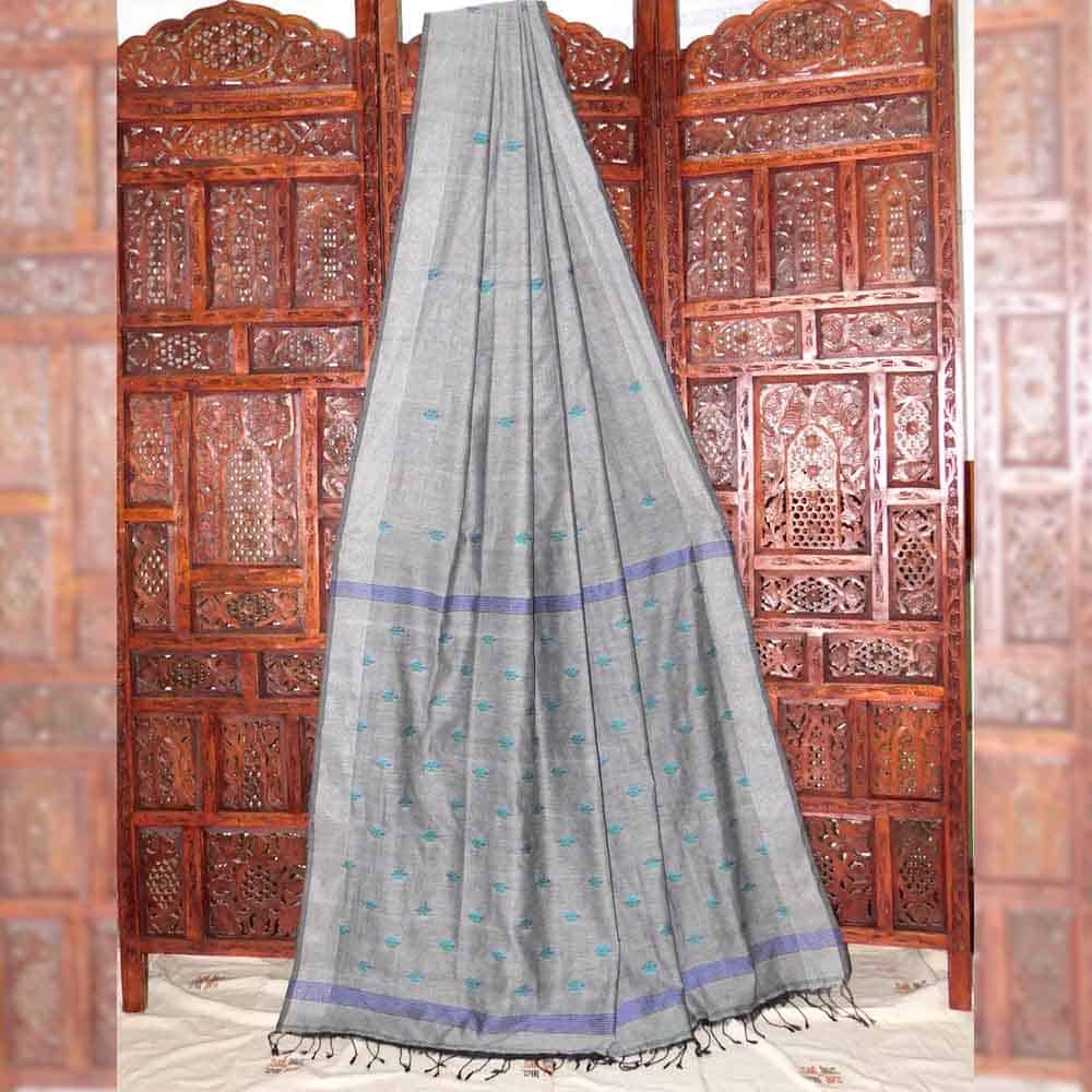 40cnt khadi cotton (handspun thread ) with all over buta jamdani handloom saree with a contrast blouse, this saree take 4 days to complete. AZO & PCP free color.Best for summer. Starch not require.