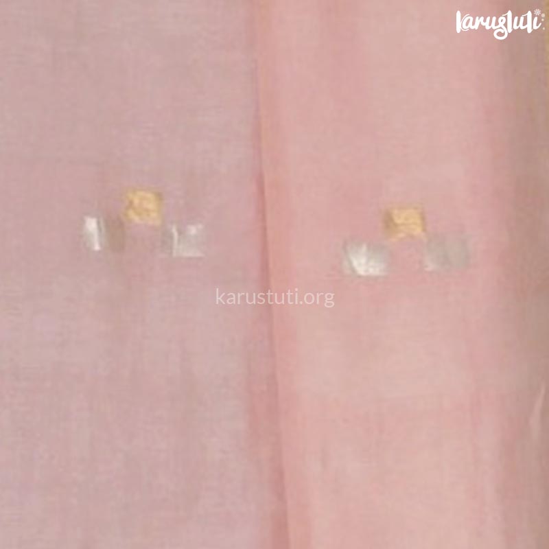 80cnt linen pitloom jamdani with triple box weaving with tested silk gold and silver zari along with zari selvage of one side gold zari and other side silver zari. This saree takes 8 to 9 days to complete. Natural, AZO and PCP free non-allergic color, elegant and light weighted well look handloom saree, best for a corporate look. best for all age group. starch not require.