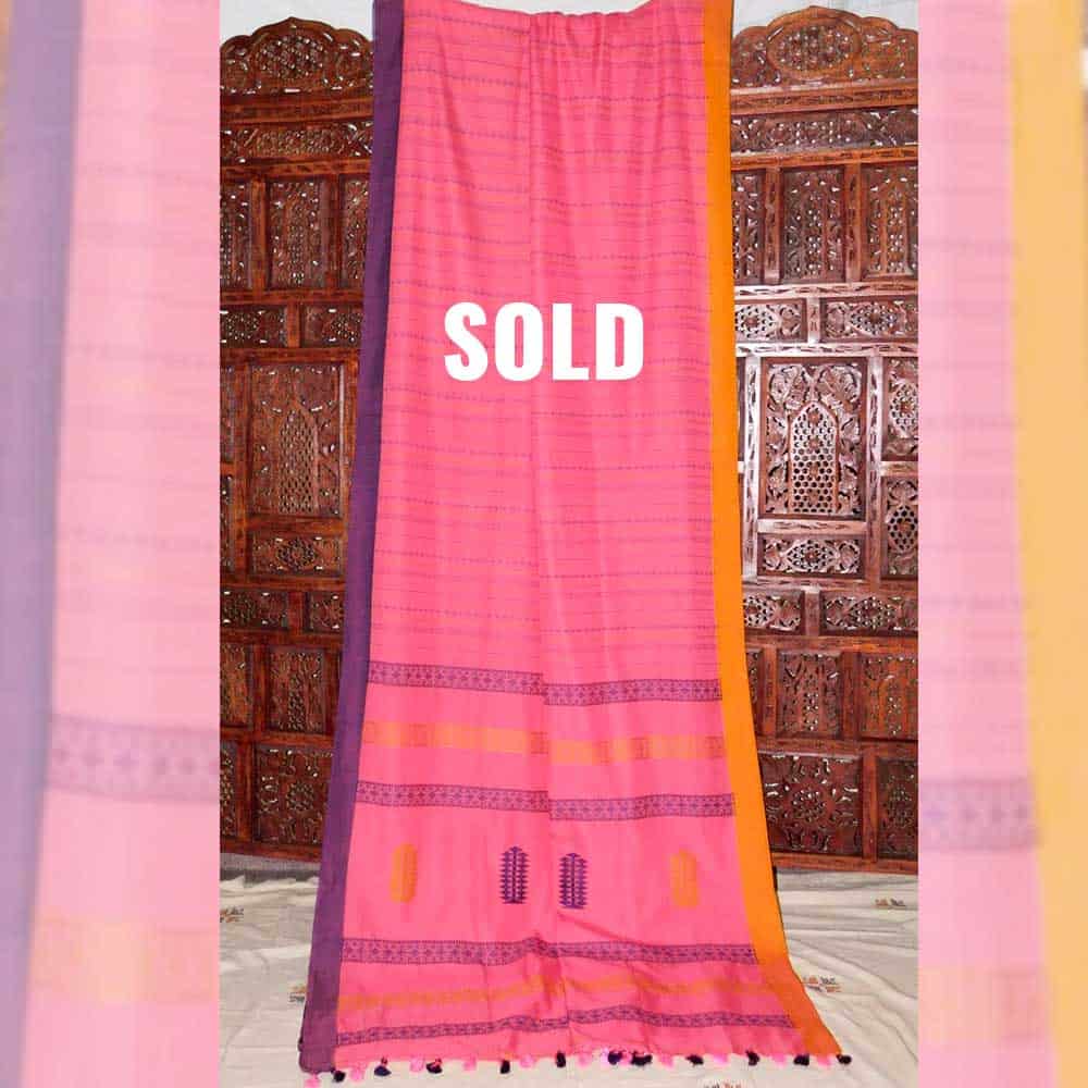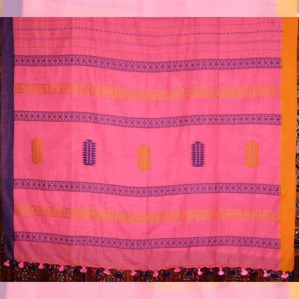 80cnt cotton Bengal handloom jacquard woven jamdani cotton saree with Ganga Jamuna border, botanic jacquard pallu with all over weaved thread work. This saree takes 4 days to complete. AZO & PCP free color. Best for summer, office wear. Starch not require.