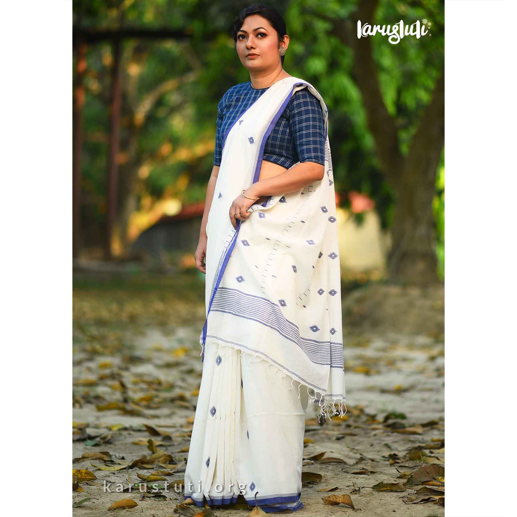 Traditional handspun cotton handwoven jamdani saree. Rich texttile weaving of Bnegal . Handspun cotton with traditional buta weaved saree take 5 days ro complete. Best for regular saree admirer.