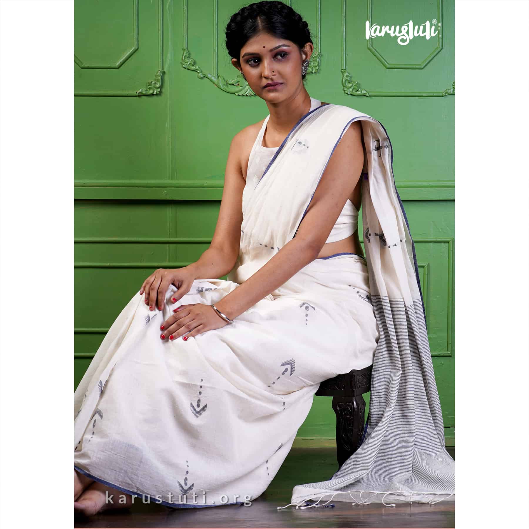 Traditional handspun cotton handwoven jamdani saree. Rich textile weaving of Bengal. Handspun cotton with traditional buta weaved saree takes 5 days to complete. Best for regular saree admirers.