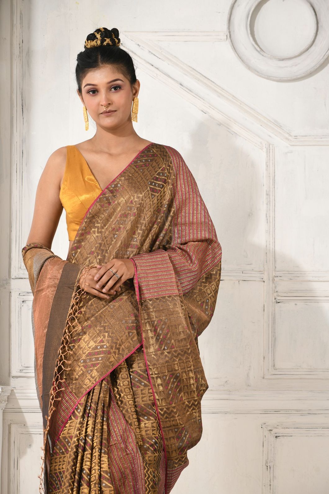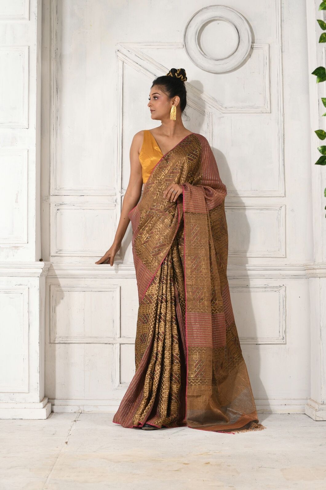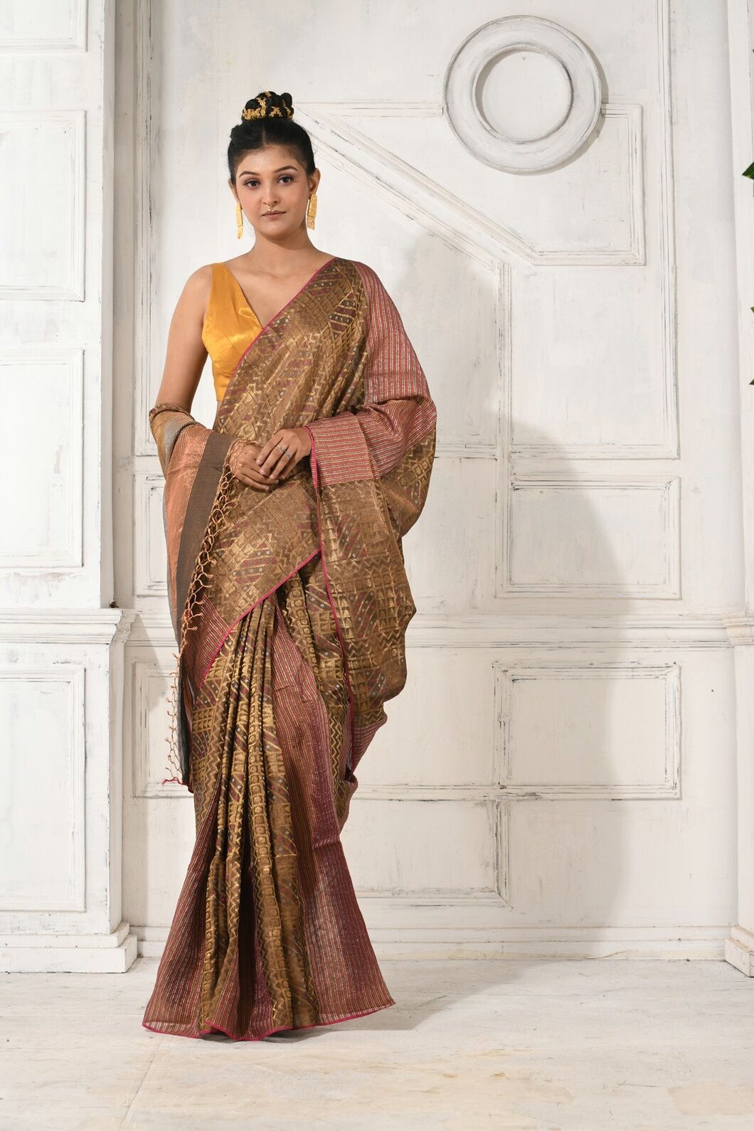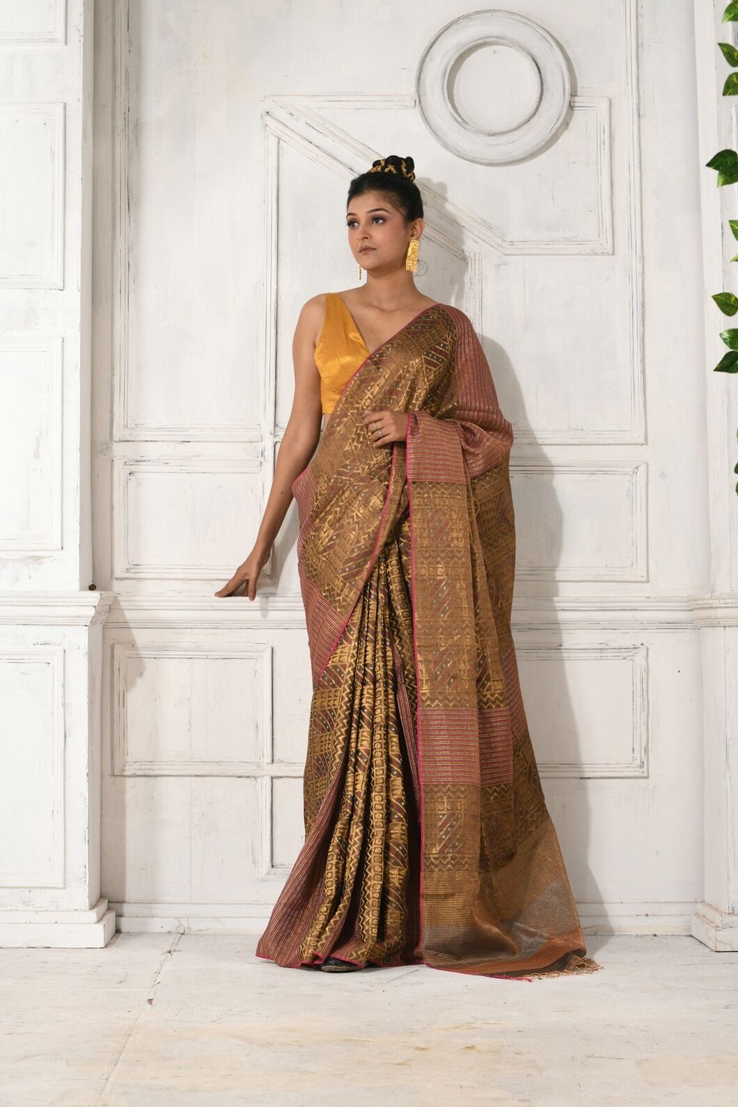 Karustuti Antique Gold Metallic Jacquard Handloom Saree