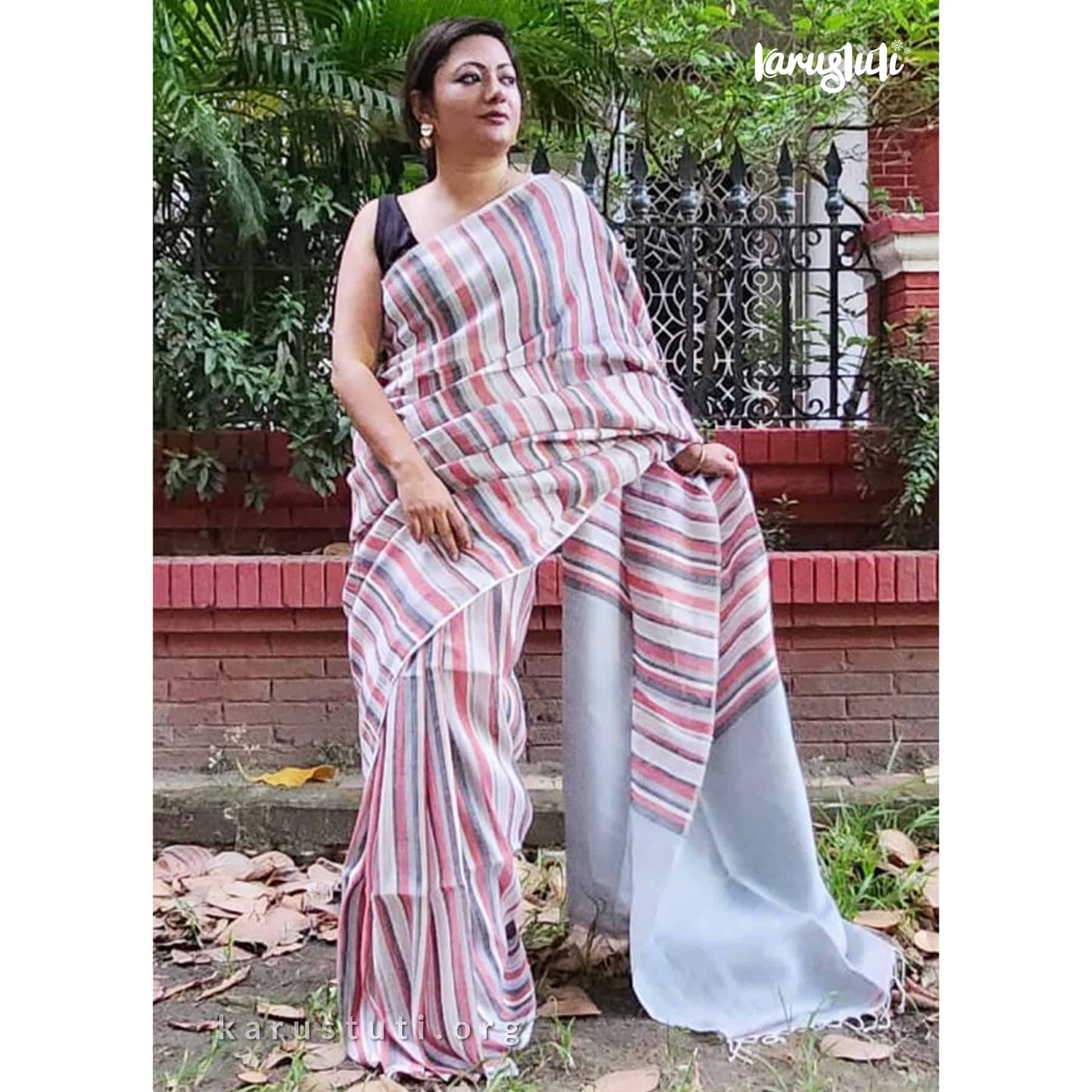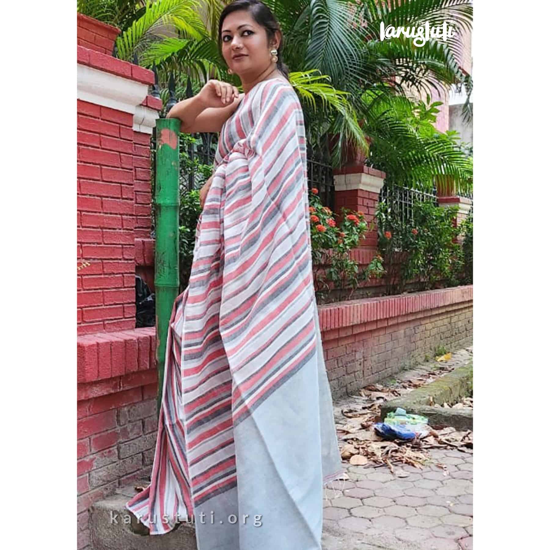 Premium linen cotton with vertical stripes and solid-colored pallu. soft breathable handloom cotton linen saree took 3 days to complete. AZO and PCP-free color with a nice fall-summer saree is the best of all summer wear.