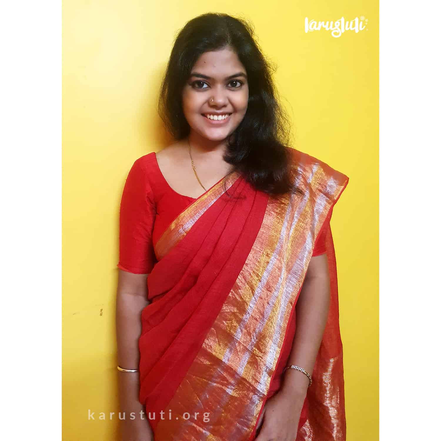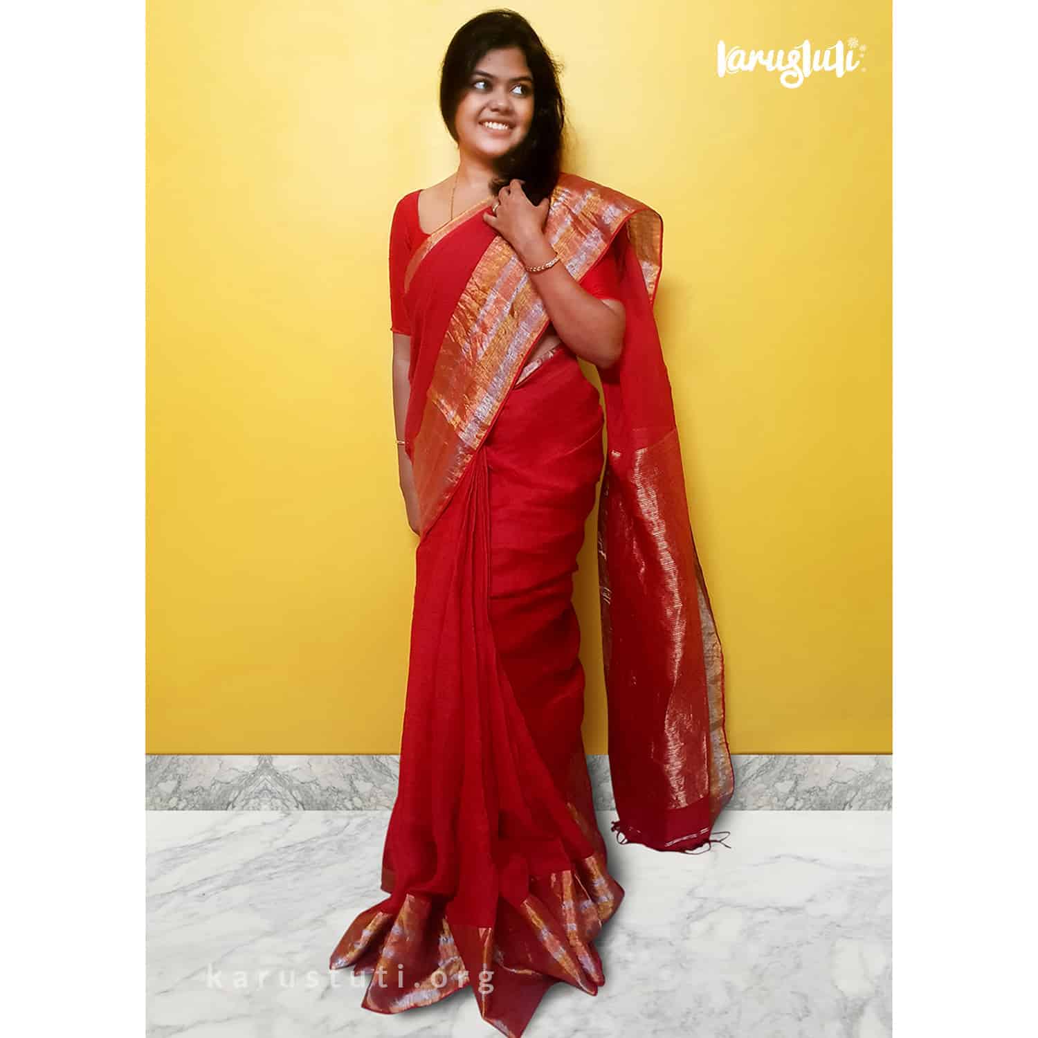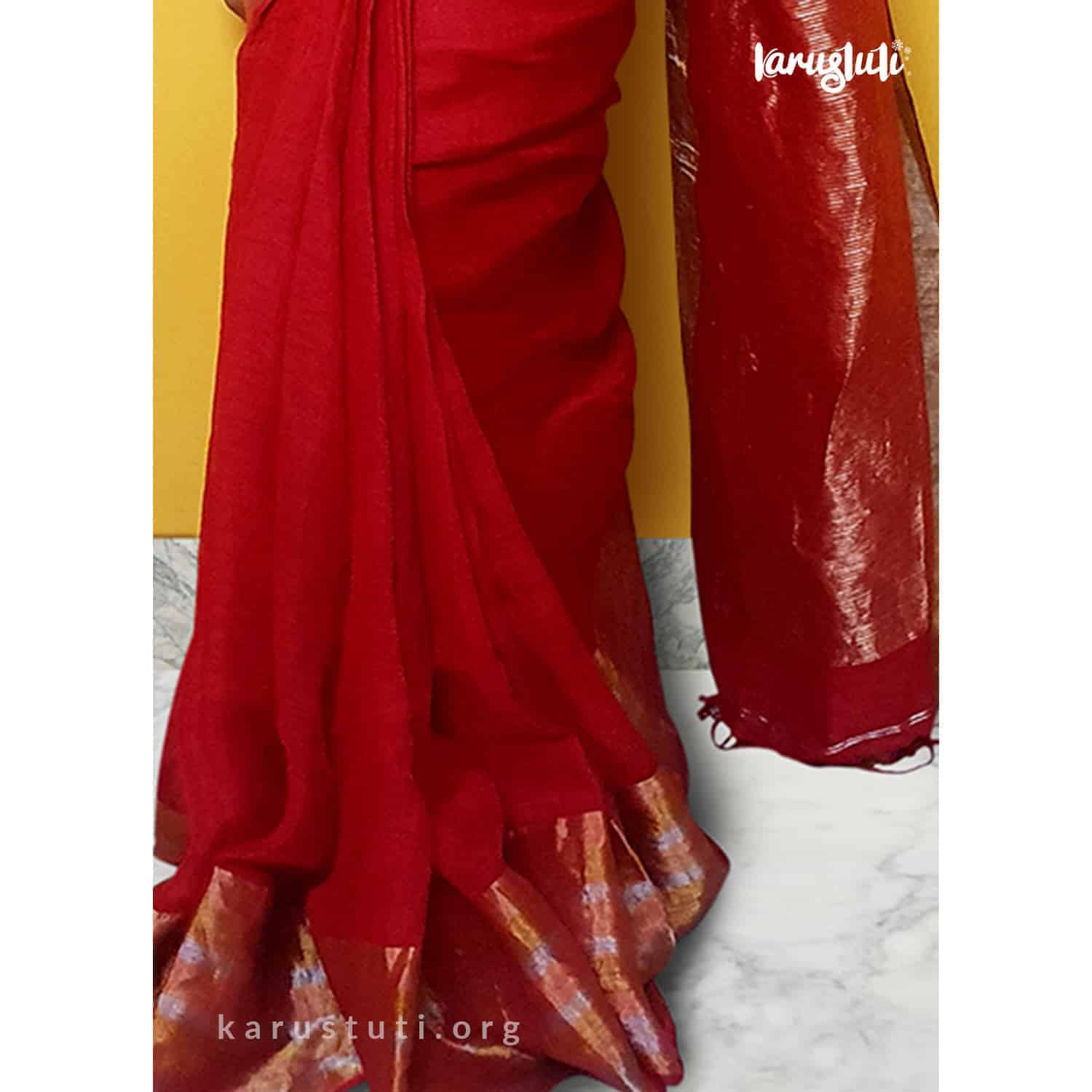 Luxurious Linen Red Handloom Saree - Elegant Ethnic Attire
