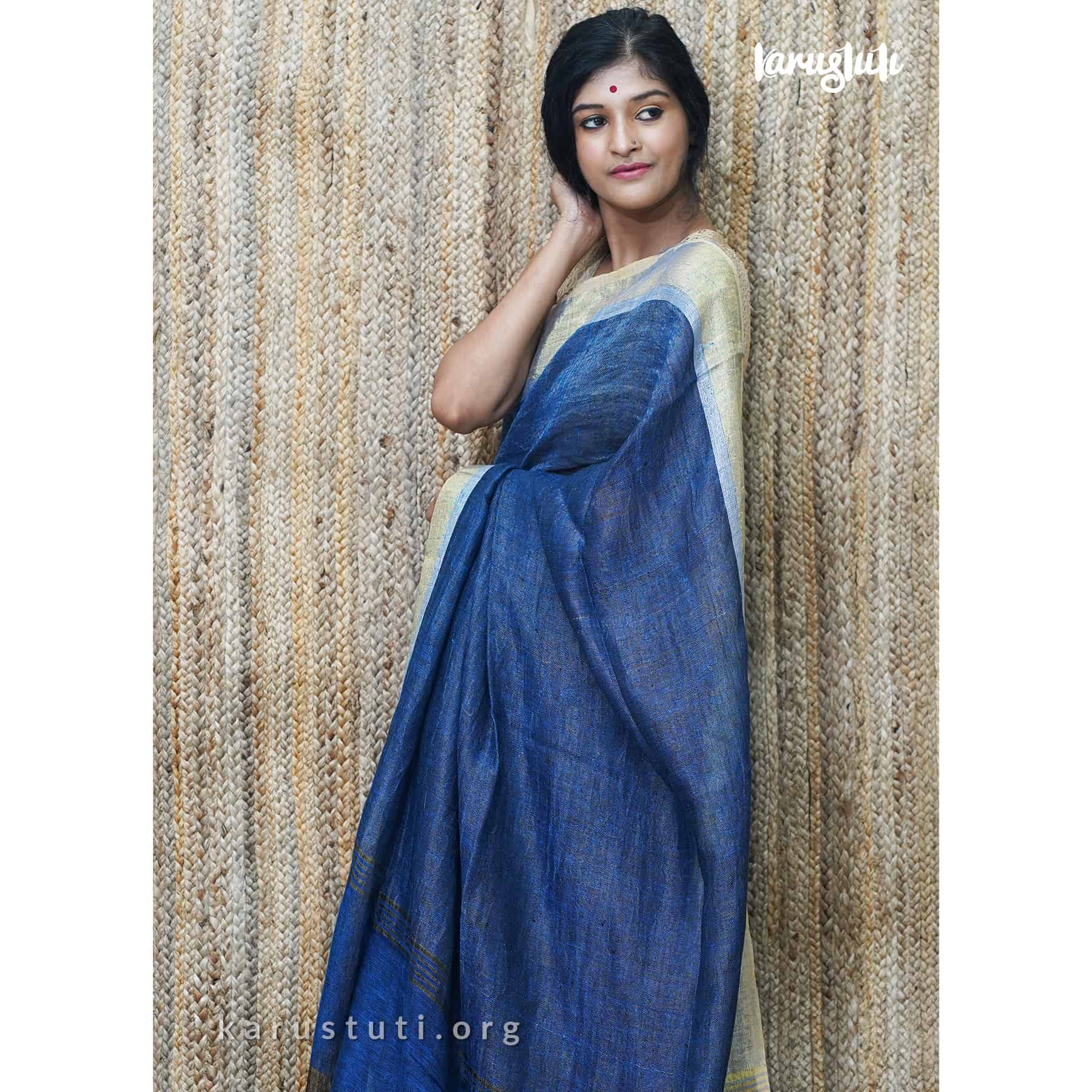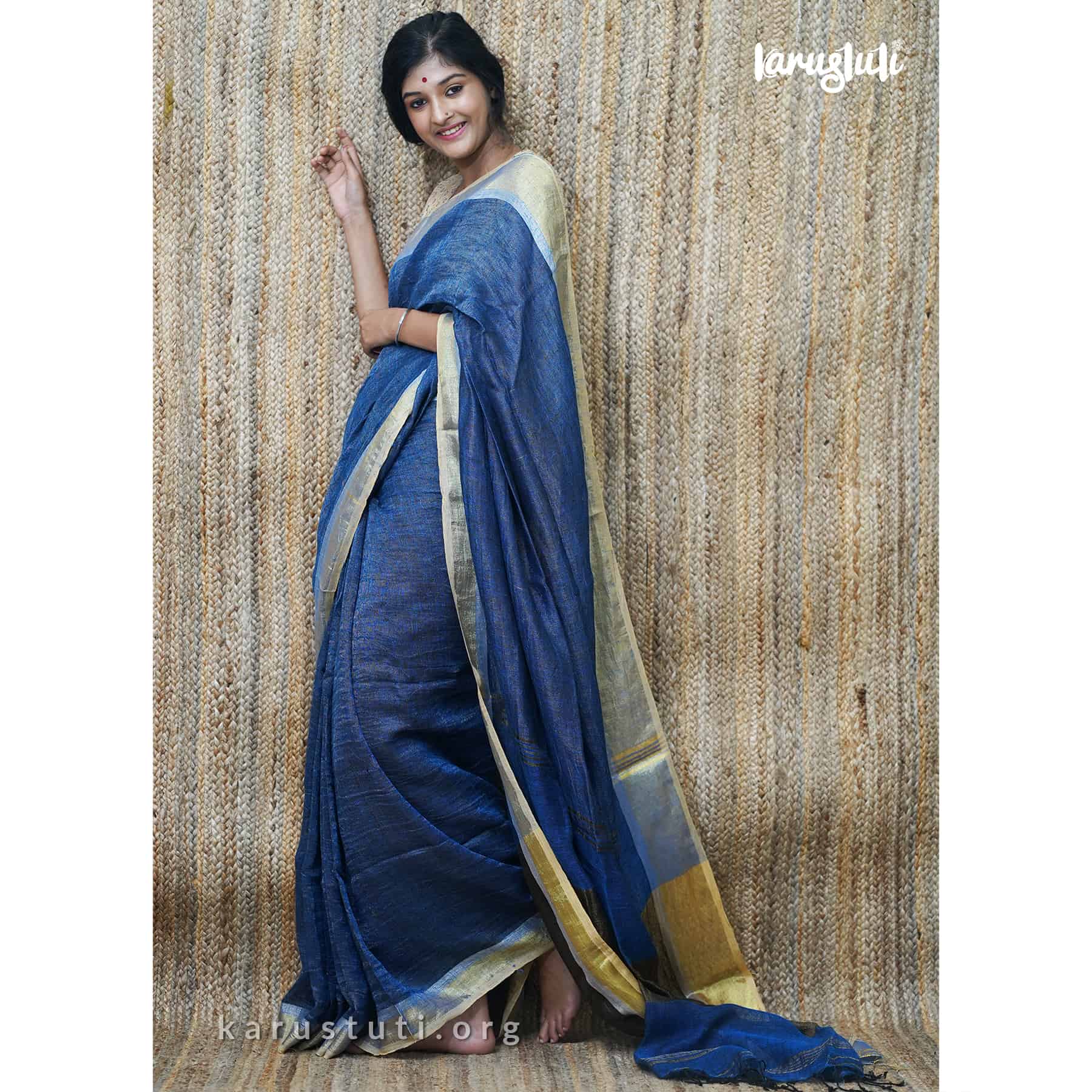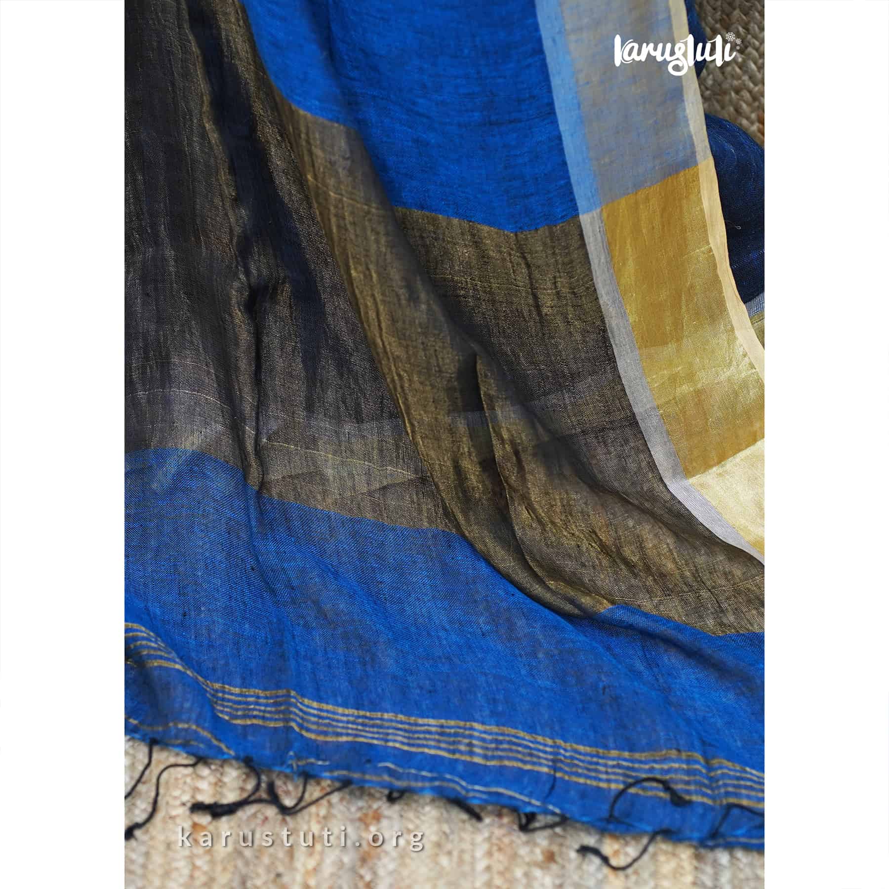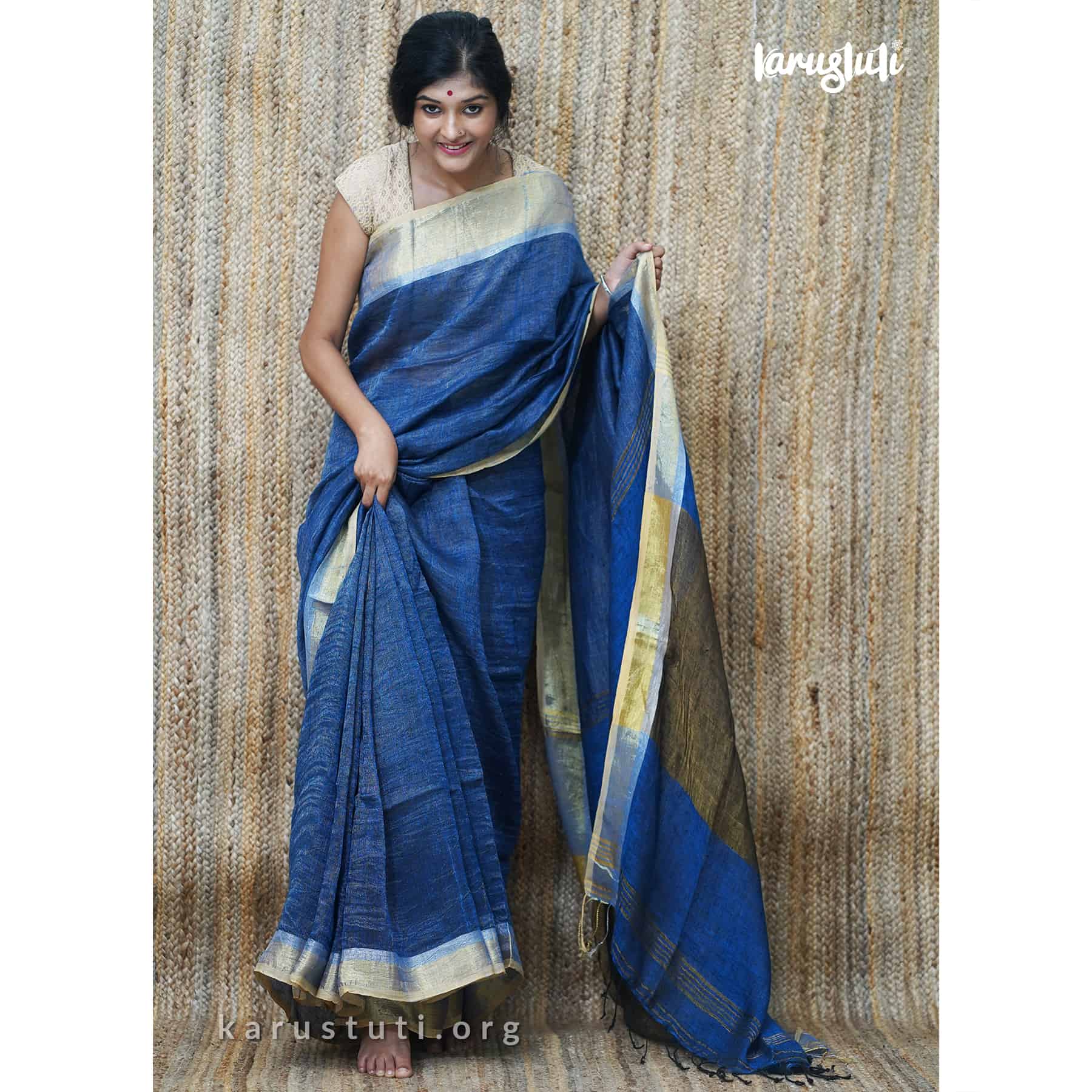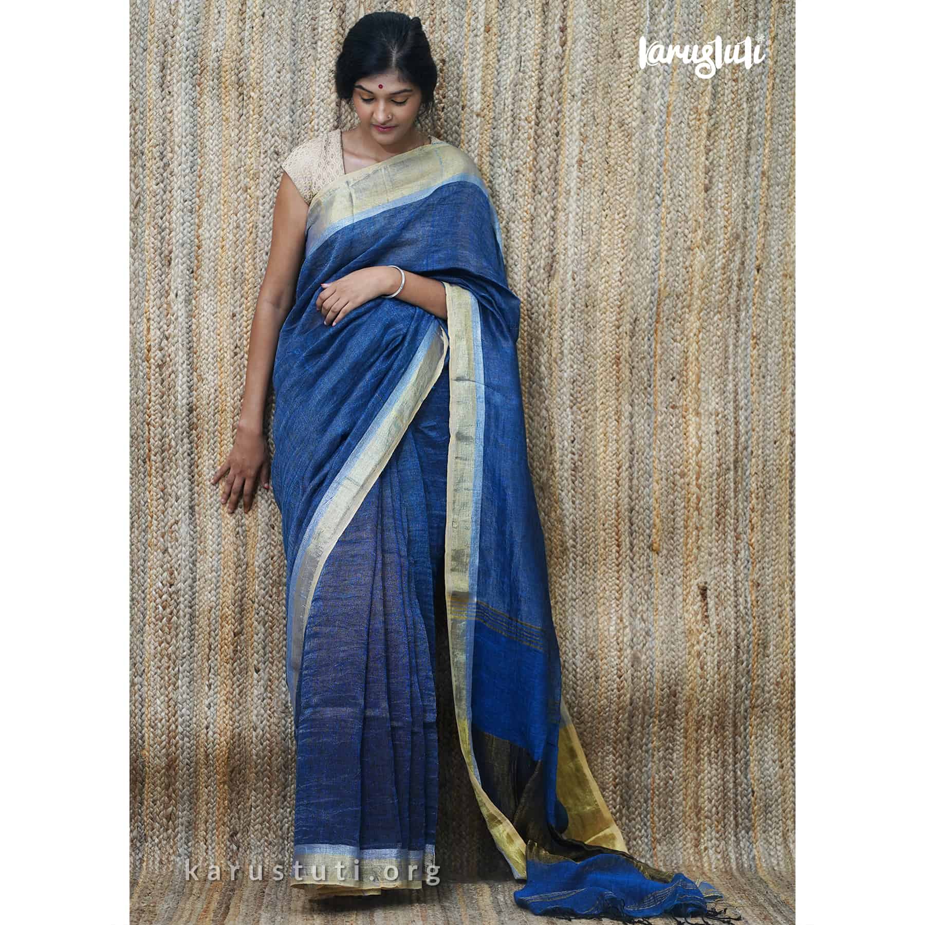 Linen handloom with all-over zari blended saree. Handmade breathable classy drape for all occasions.