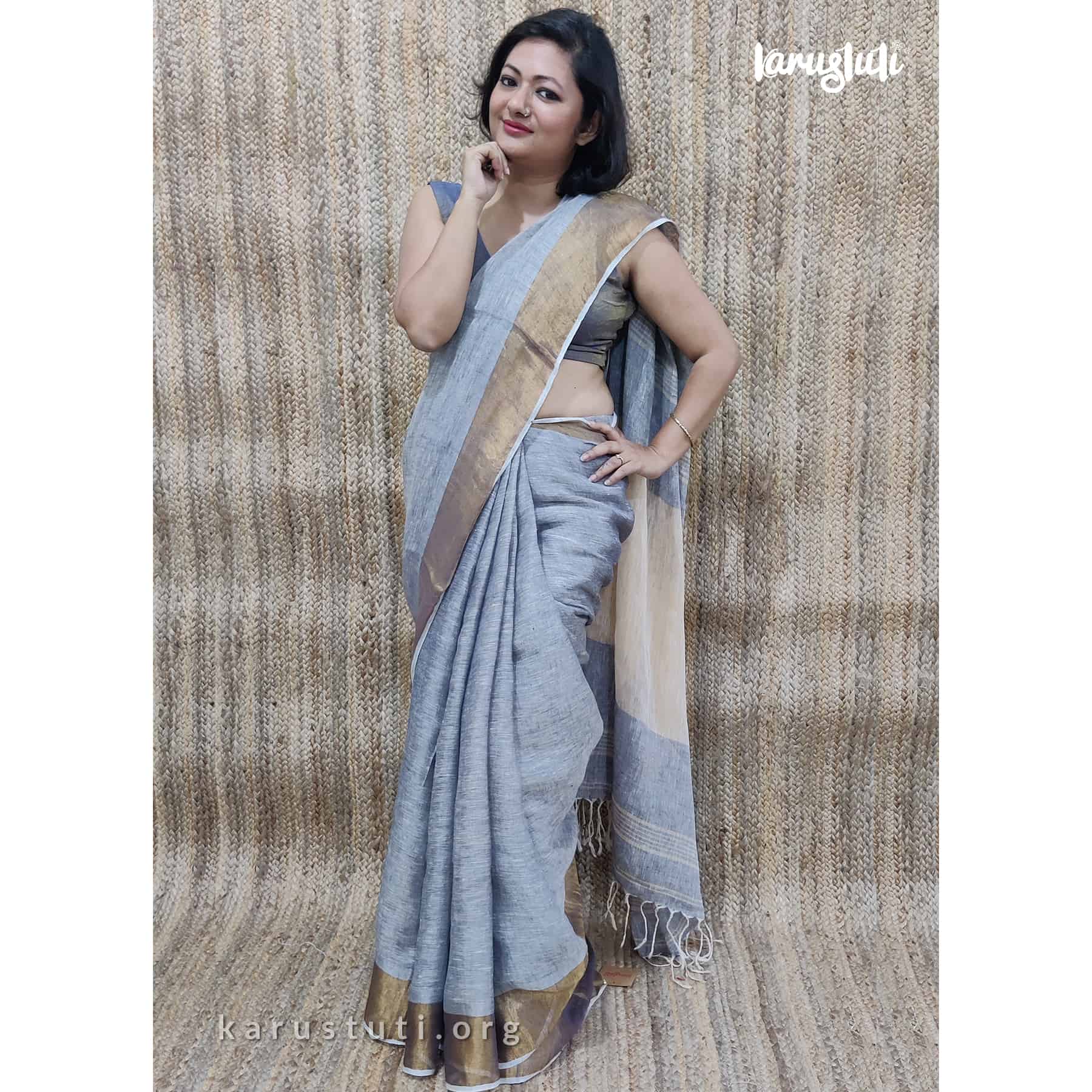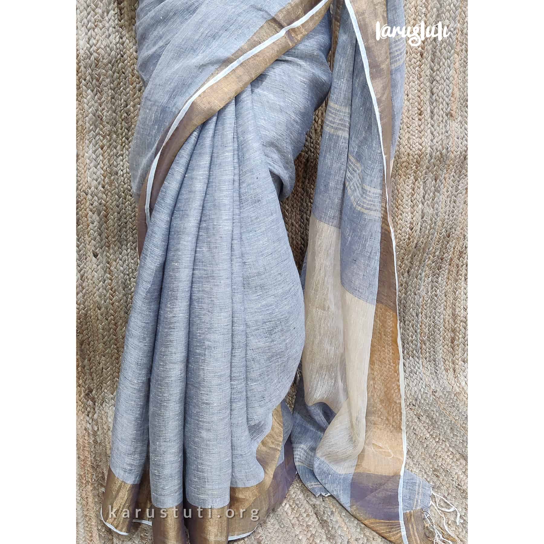 Linen handloom with all-over zari blended saree. Handmade breathable classy drape for all occasions.