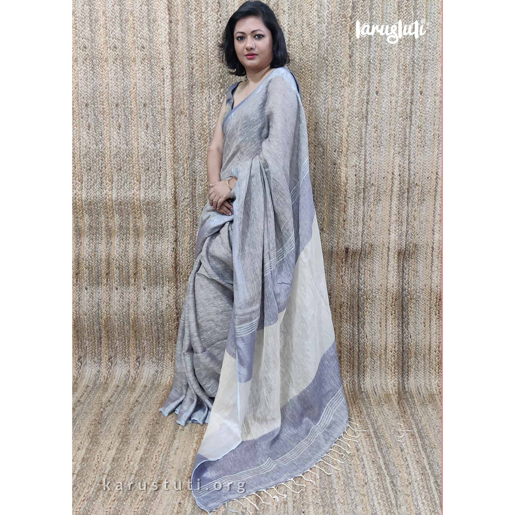 Linen handloom with all-over zari blended saree. Handmade breathable classy drape for all occasions.