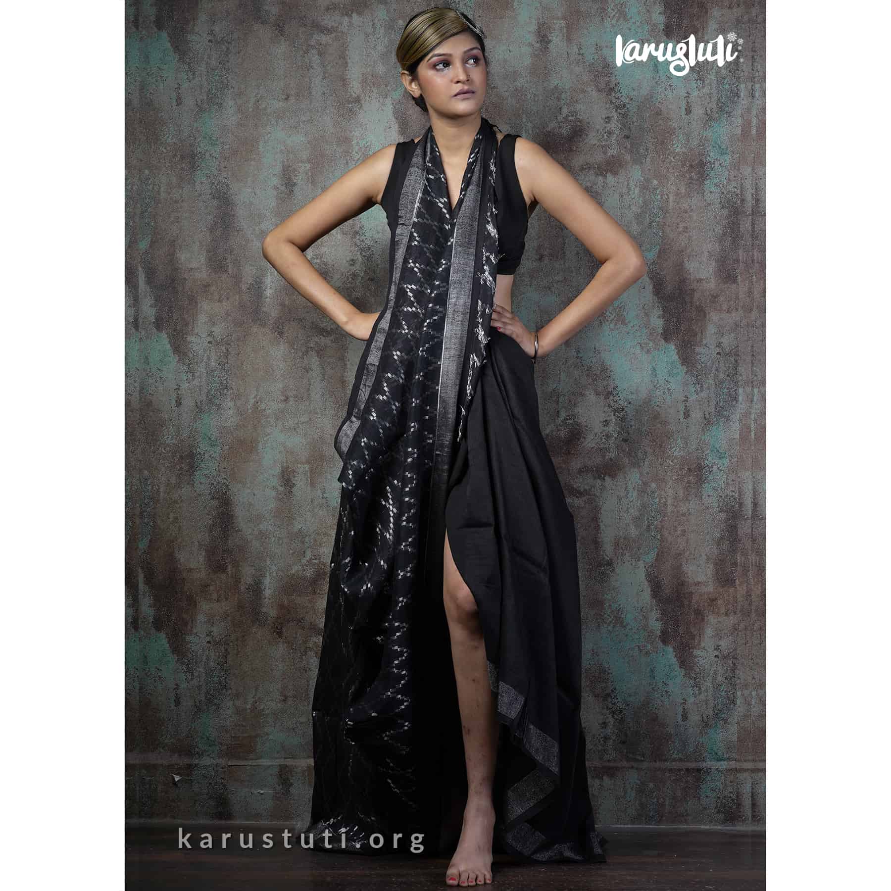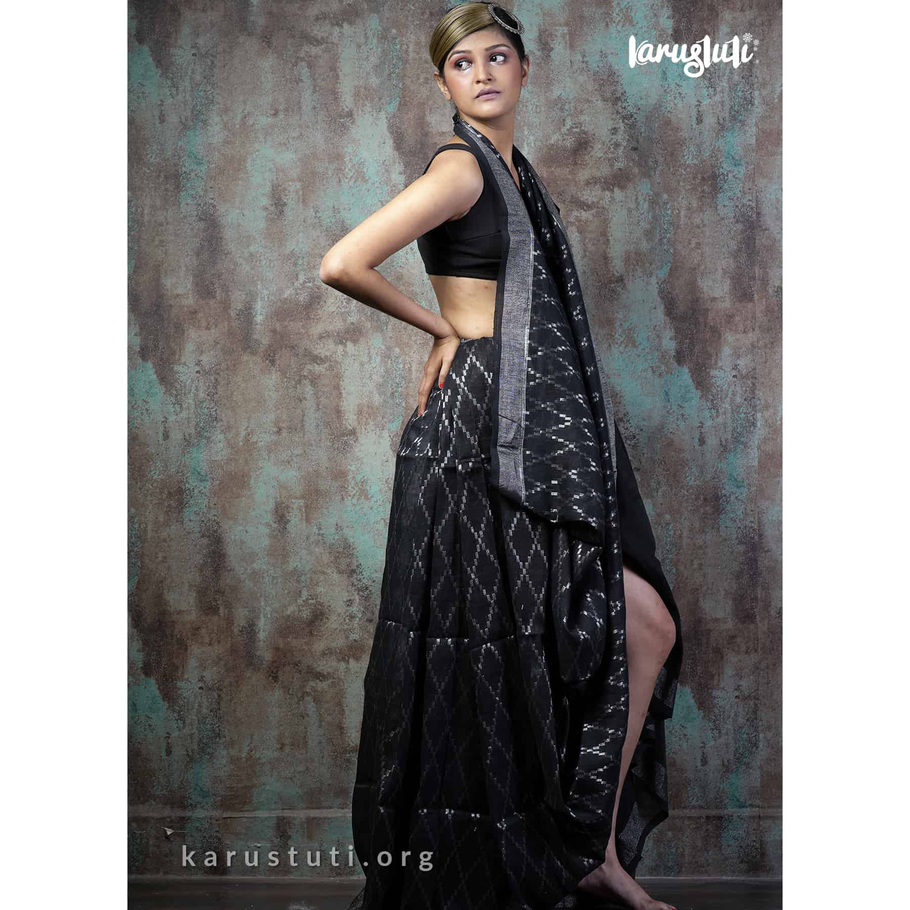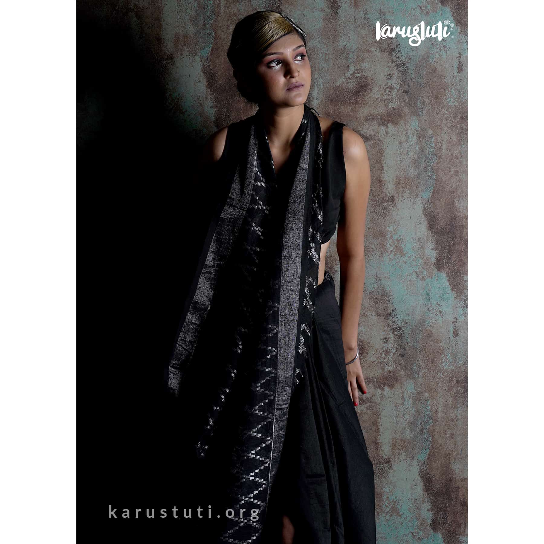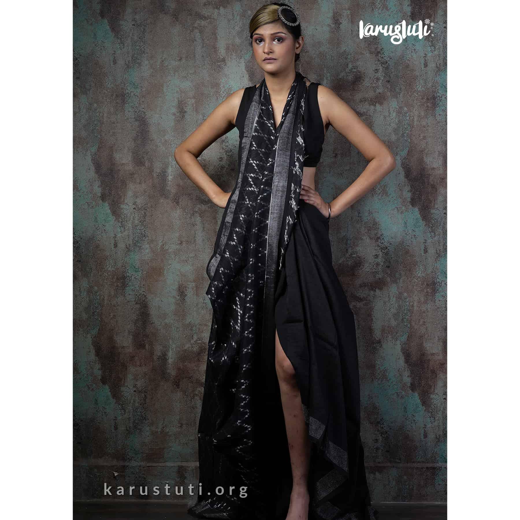 Black Linen Zari Jacquard Handloom Saree Collection | Karustuti