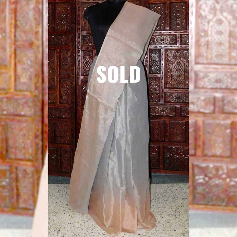 120cnt premium linen with silk tested gold zari weft, also ombre tie and dye weaving in the bottom this saree known as Metalic saree. Use of highest count and premium linen gives very delicately and light-weight, extraordinary classy linen saree. This saree takes 8 days to complete, Delicate ultimate fashion for the party. AZO and PCP free non-allergic color.