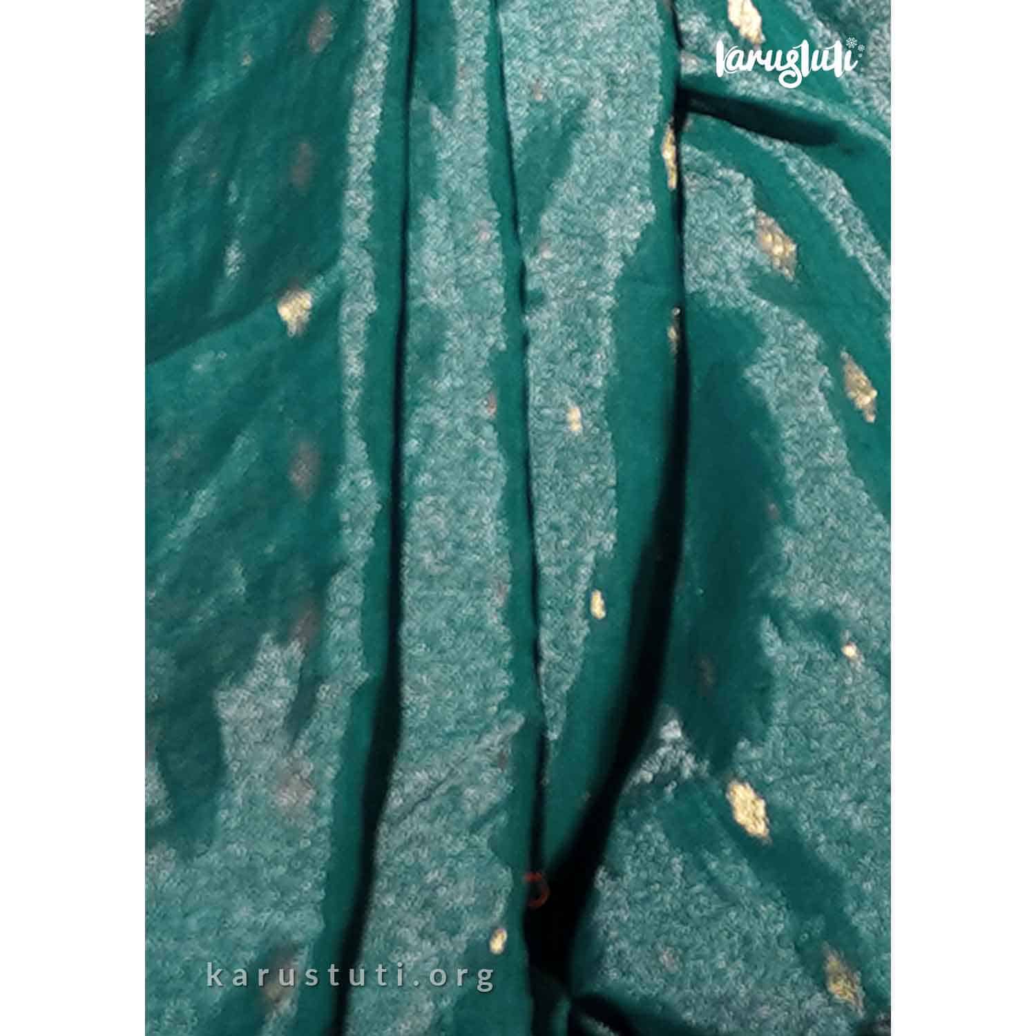 120cnt premium linen with gold tested zari in the warp and all over small silver meenakari buta weaving, this saree known as Metalic saree. the highest count of linen with a shade of dark copper gold gives very delicately and light-weight feel, An extraordinary classy linen saree for a festive party. This saree takes 8 days to complete, Delicate ultimate fashion for the party. AZO and PCP free non-allergic colour.