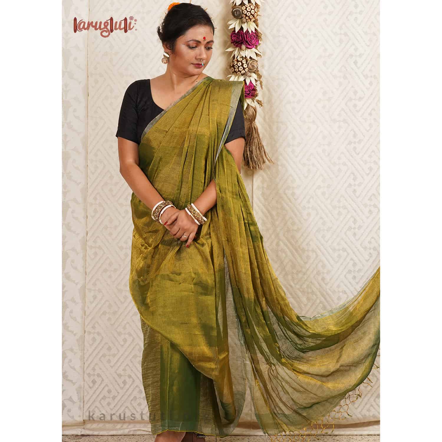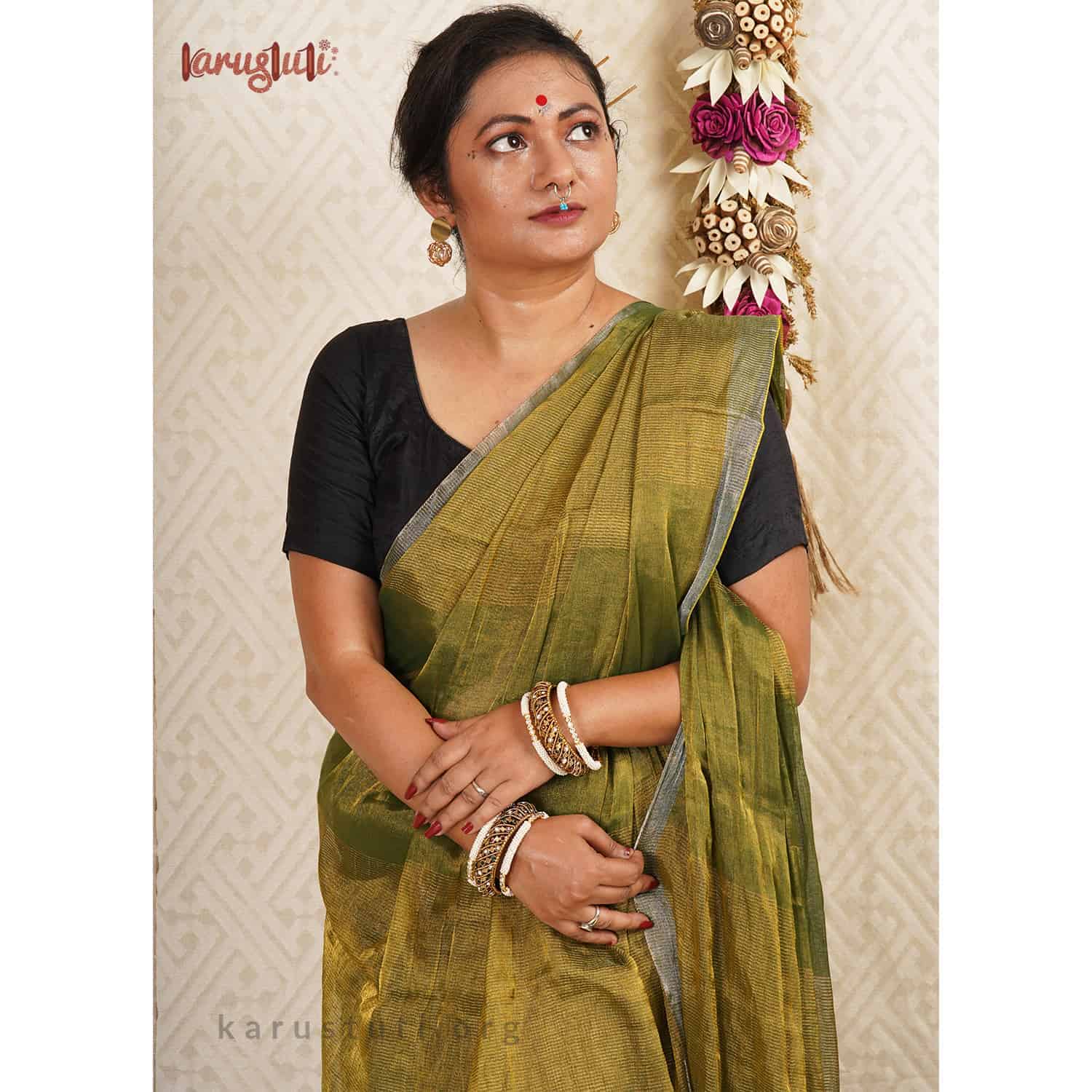 The Metallic Handloom saree comes with a silk gold tested zari in weft. Its metallic spring thin stripes with gold and silver shades on blue gives a rich and classy look to this elegant drape. It is an ultimate choice for party wear and can be worn across seasons. This saree takes 7 to 9 days to be completed. 100% natural, AZO and PCP free non allergic color has been used to create this masterpiece. Starch is not required.