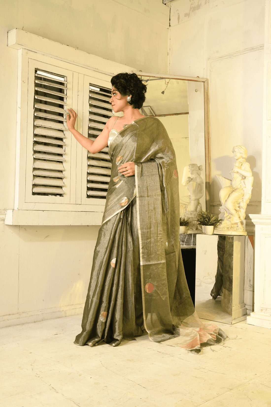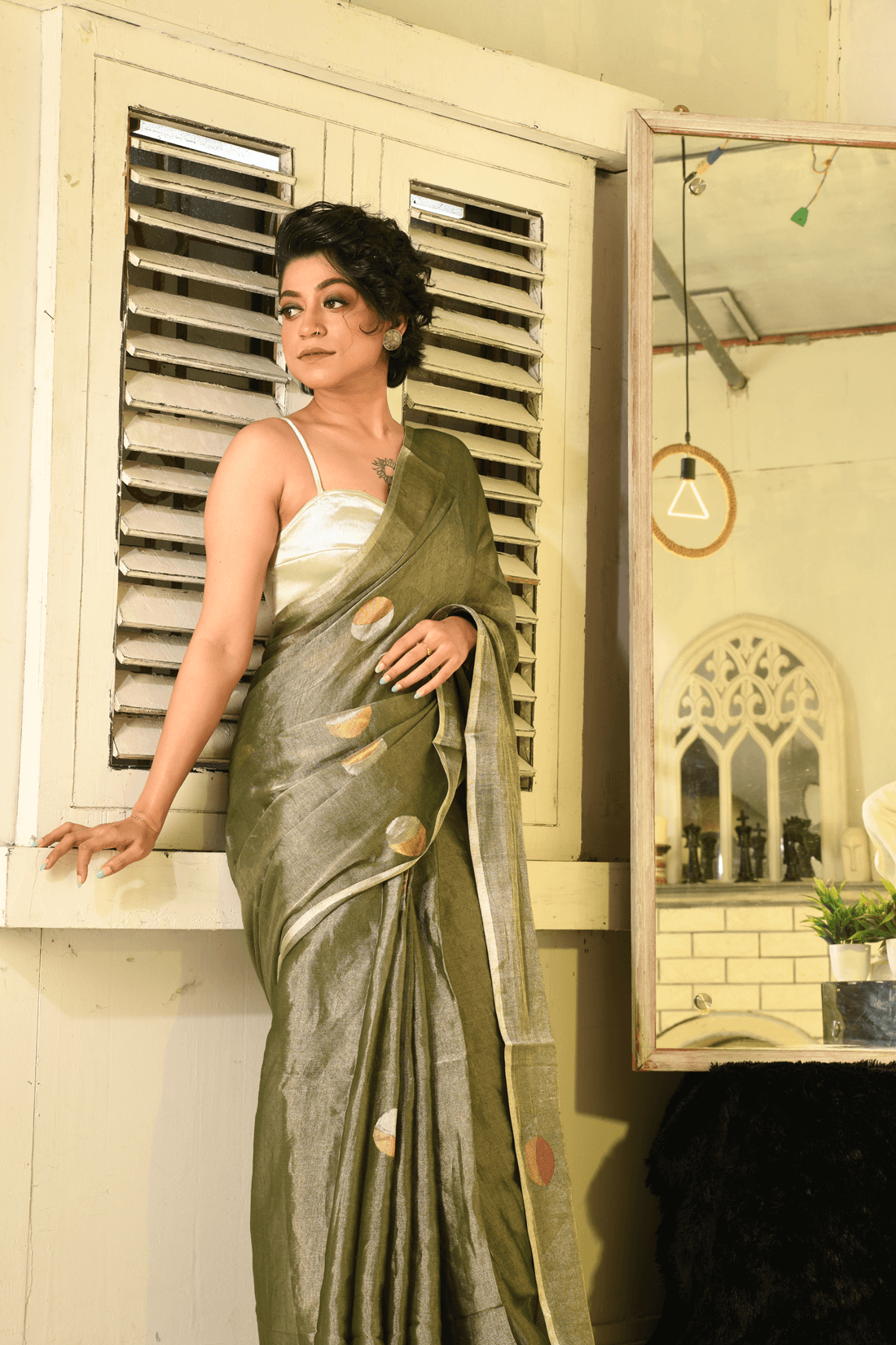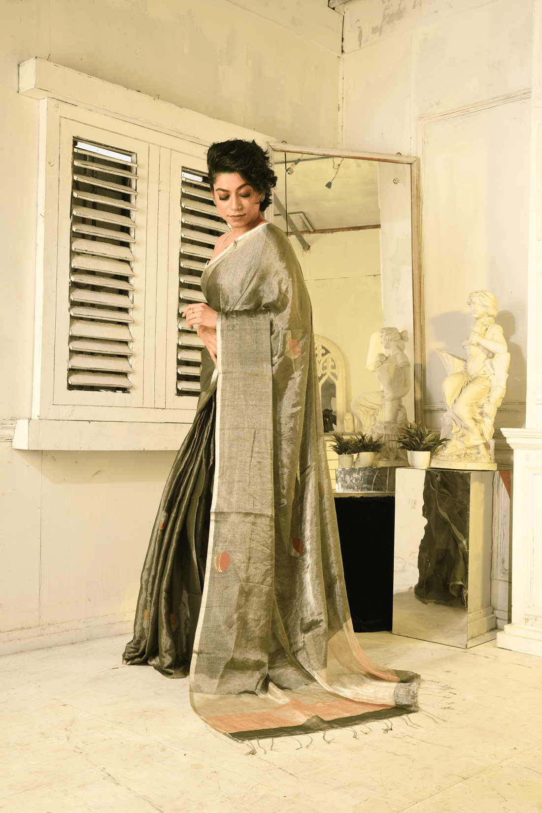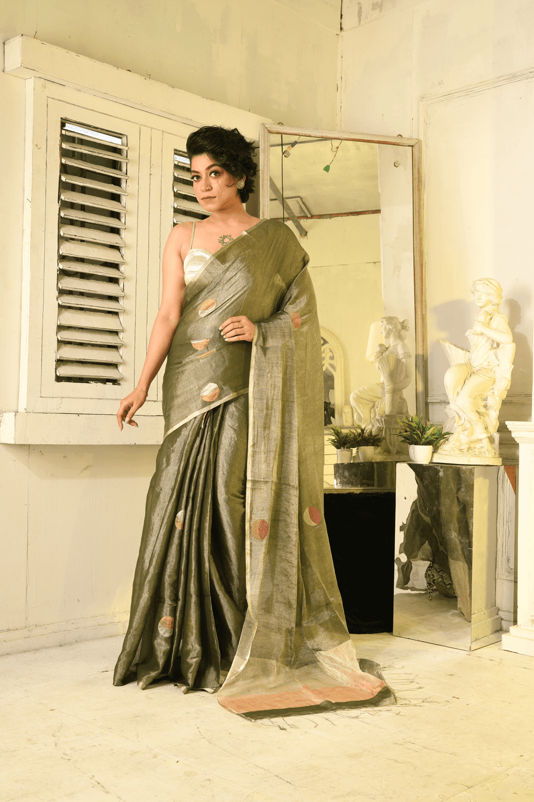 Metallic Handloom Saree | Handwoven Jamdani Metallic in Sage Green
