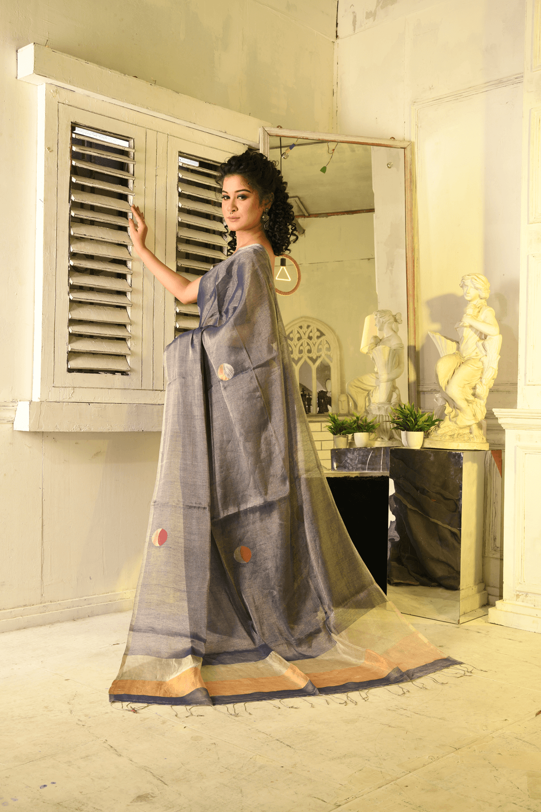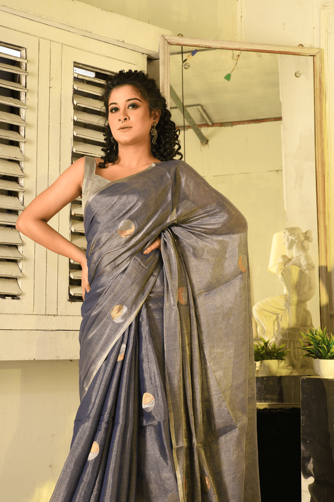 Metallic Handloom Saree | Handwoven Jamdani Metallic in Ink Blue