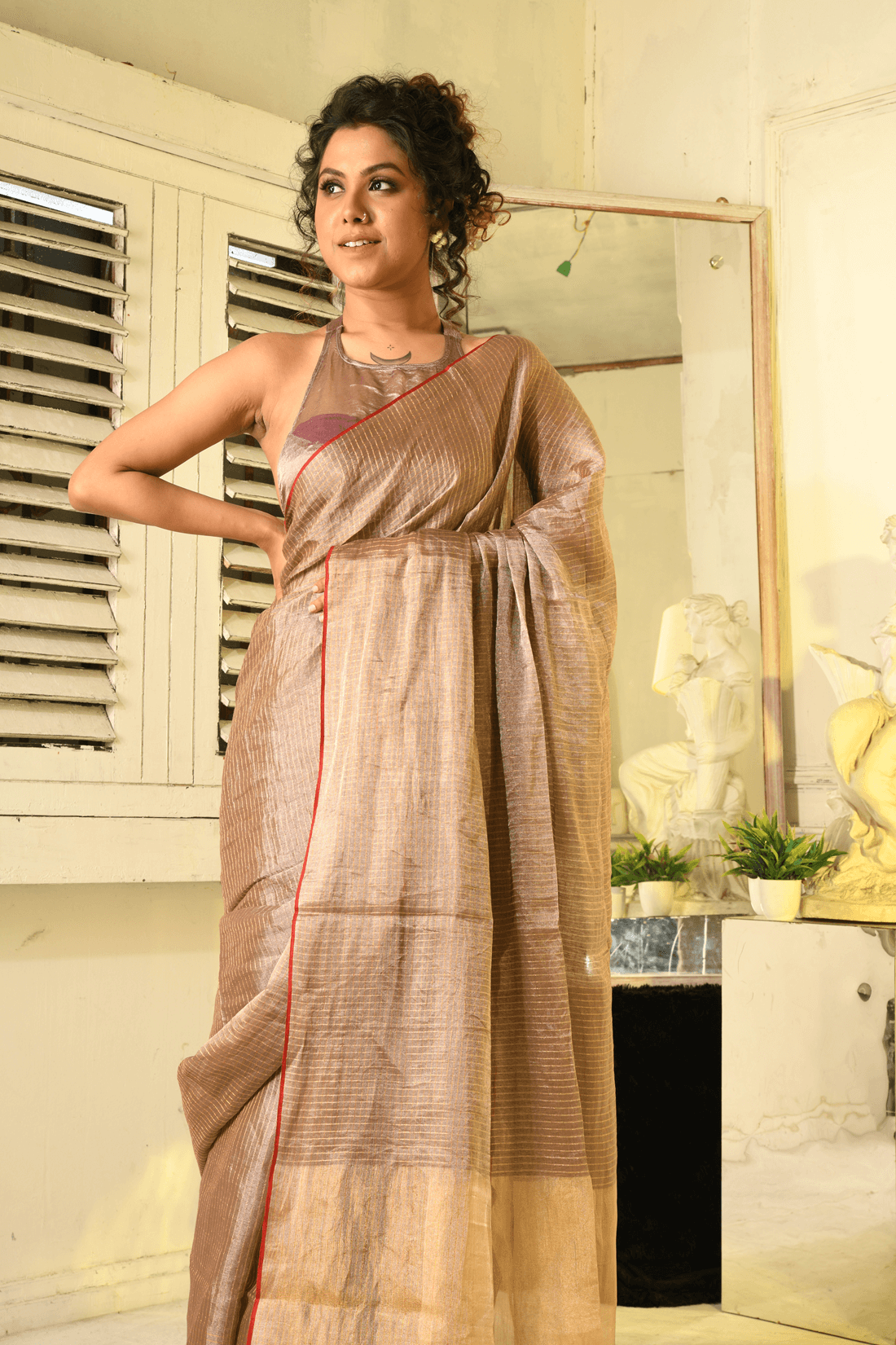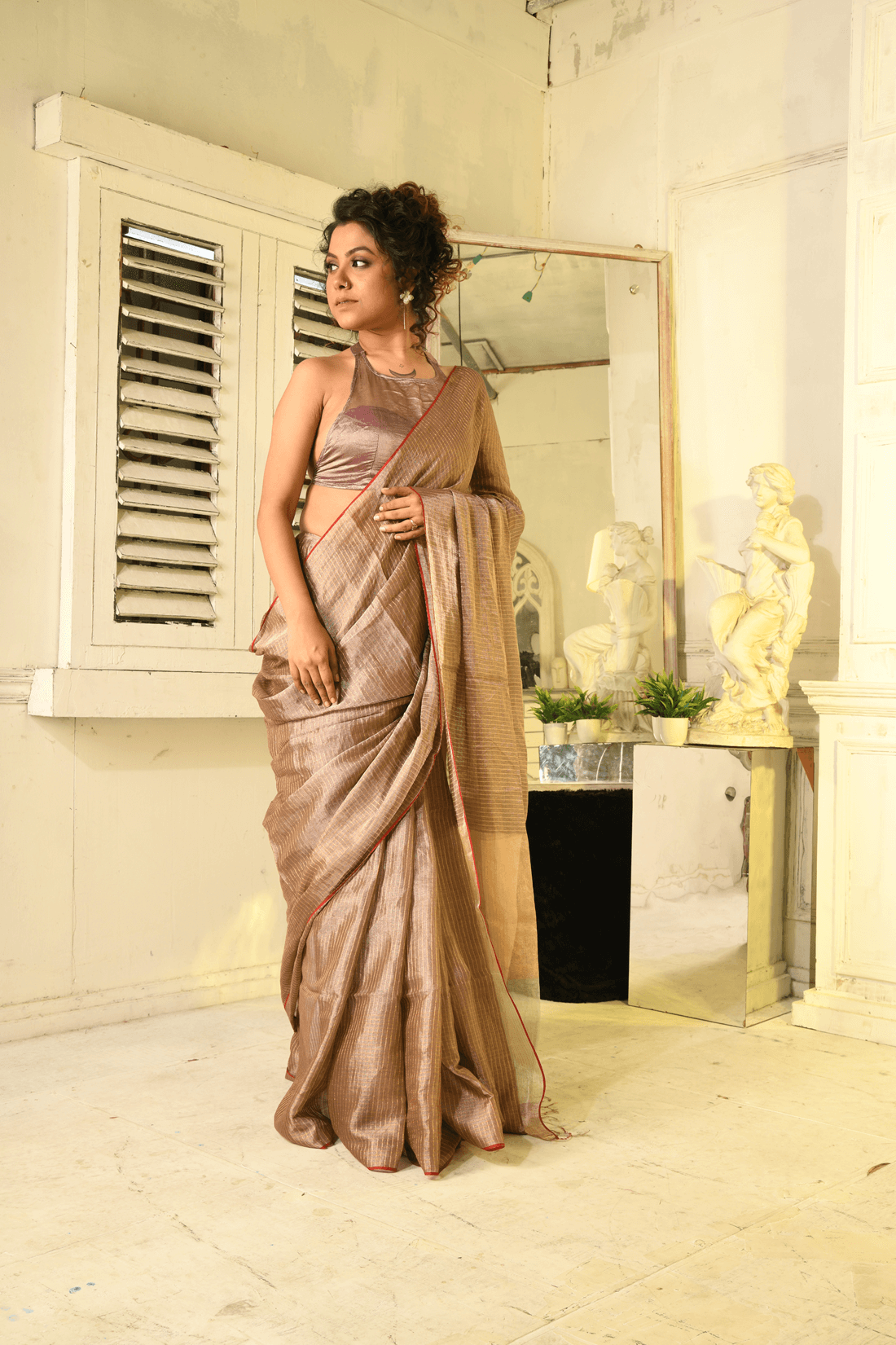 The Metallic Handloom Saree – Nude Beige stands out for its minimalist sophistication. The handwoven checks pattern gives it a modern twist, while the metallic detailing elevates its festive charm. Perfect for women who want elegance with subtle glamour, this saree transitions seamlessly from day celebrations to evening parties.