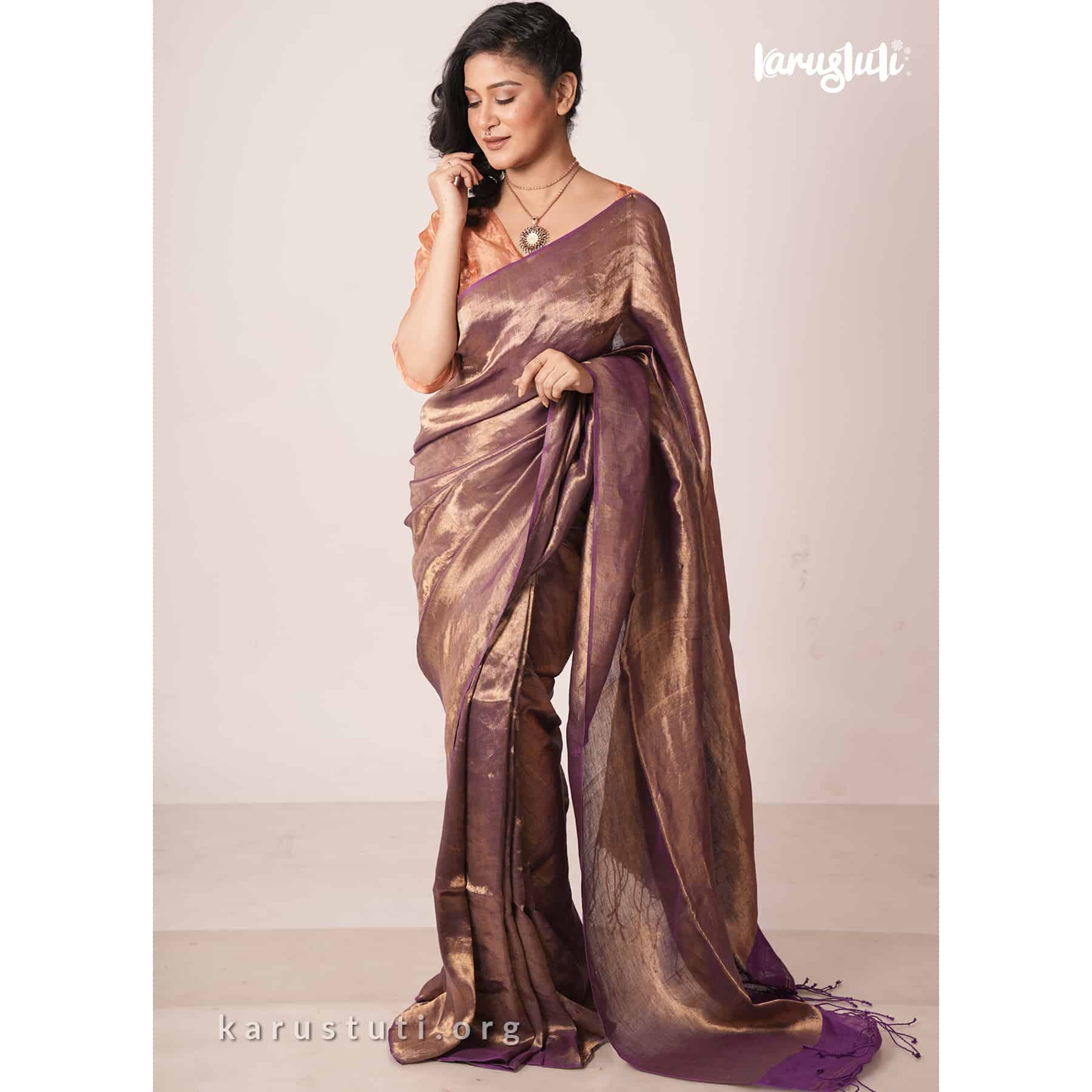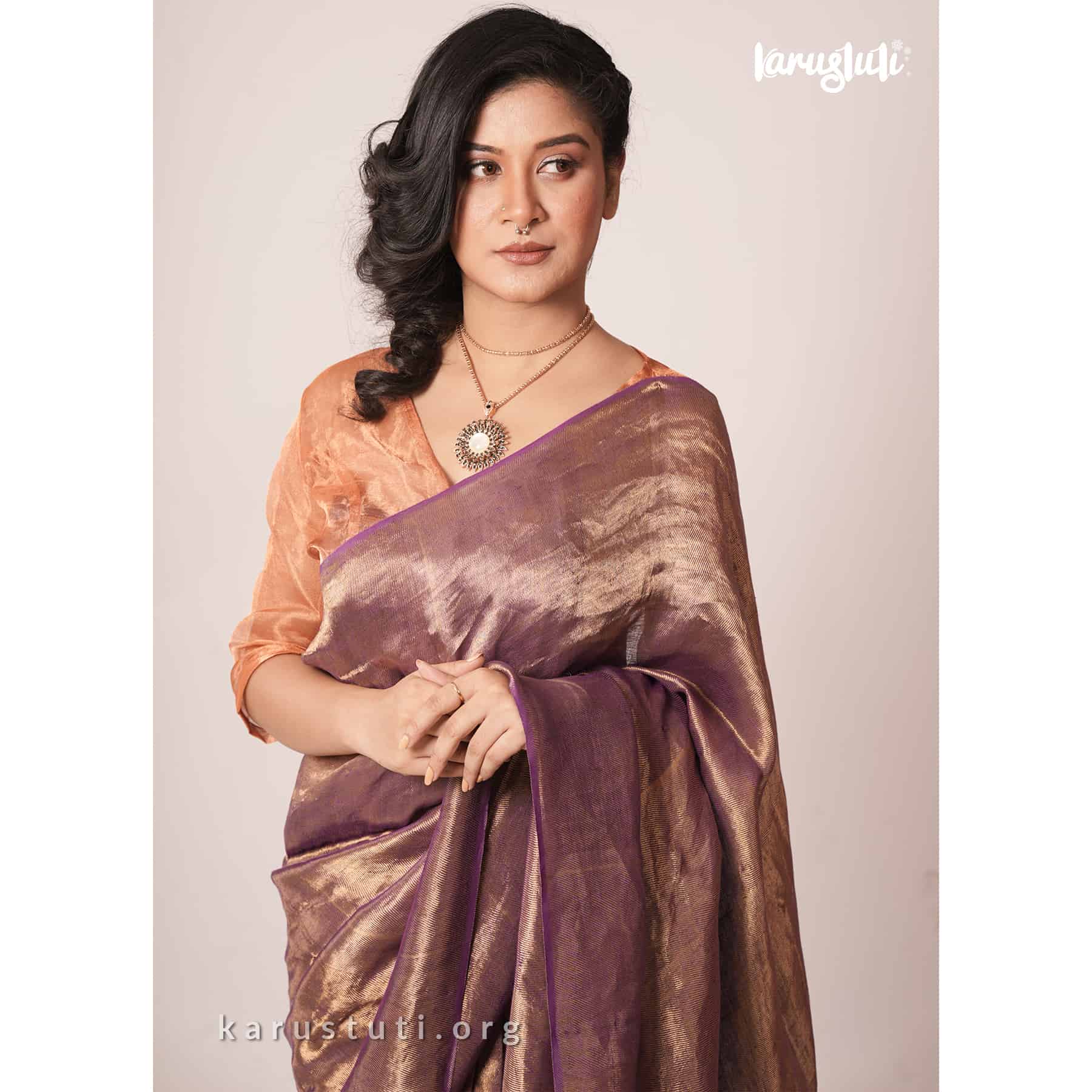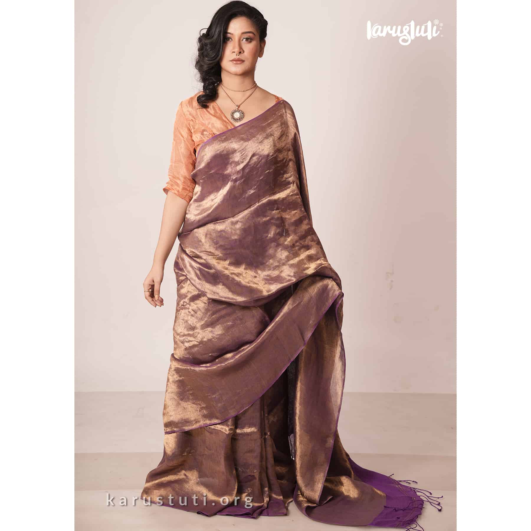 80 CNT fine linen with all-over twisted 3-ply tissue weaving, twisted pattern with linen gives you nice fall and ultimate festive wear. This saree takes 7 days to complete. AZO and PCP free color. Starch not require.