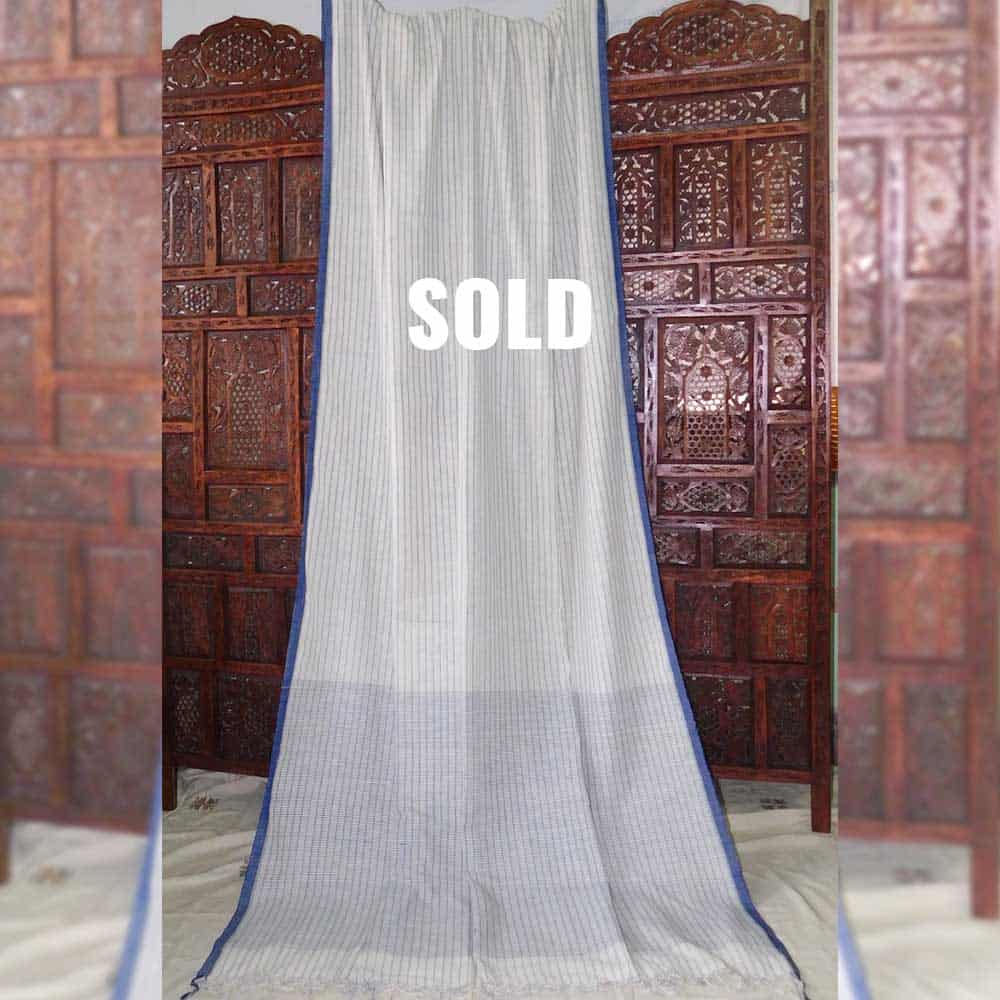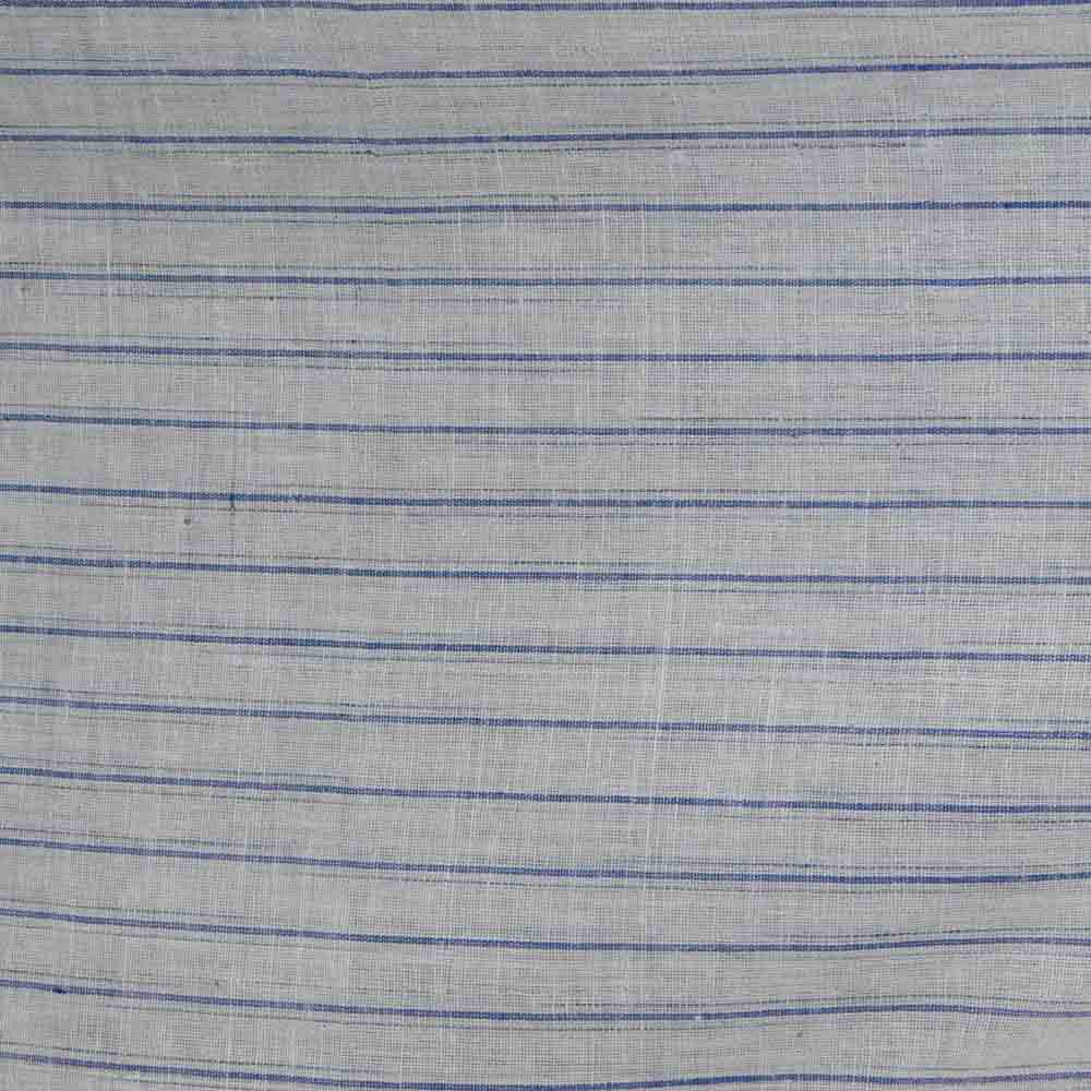 60cnt khadi cotton handloom saree. Off white and blue horizontal stripe in weaving, contrast light blue pallu. This saree takes 3 days to complete. AZO & PCP free Color. Best for a summer afternoon. Starch not require.