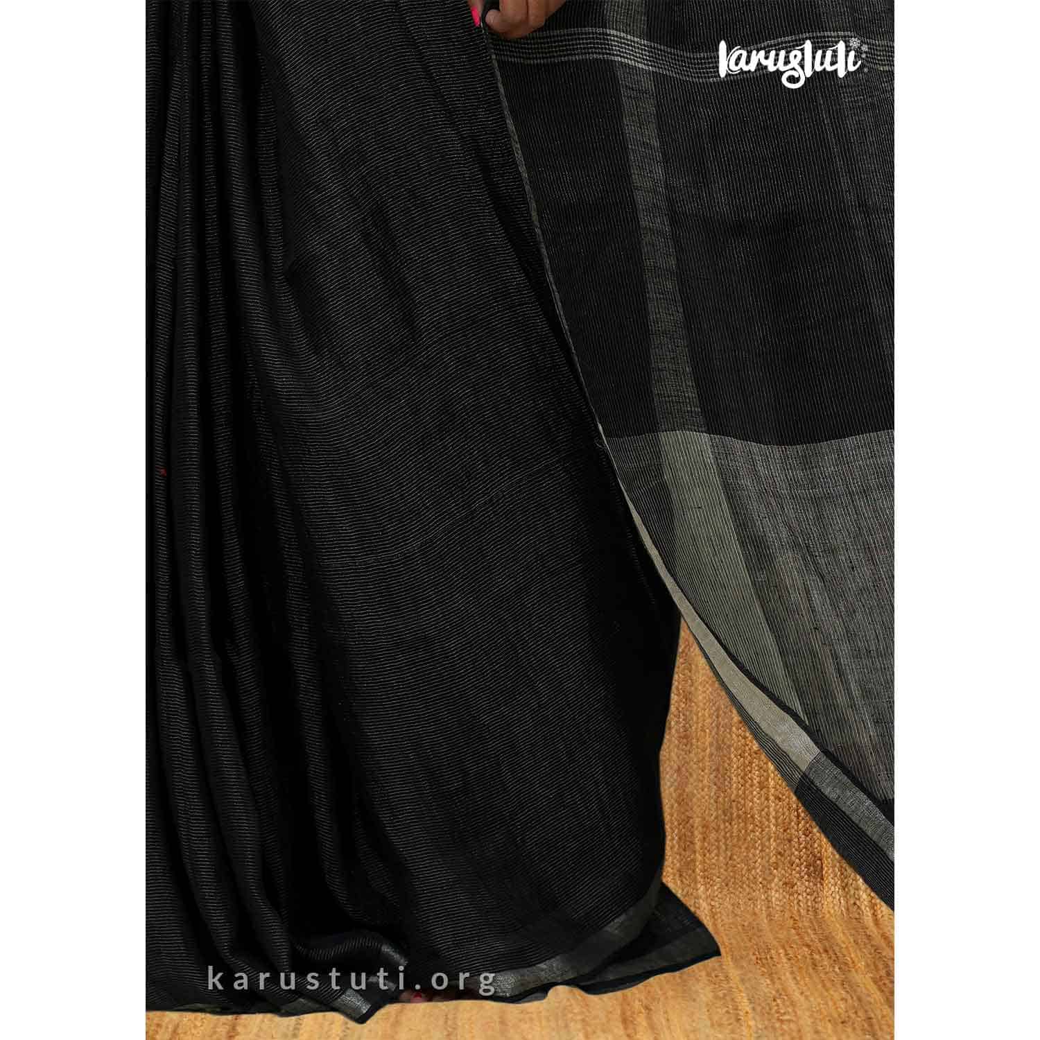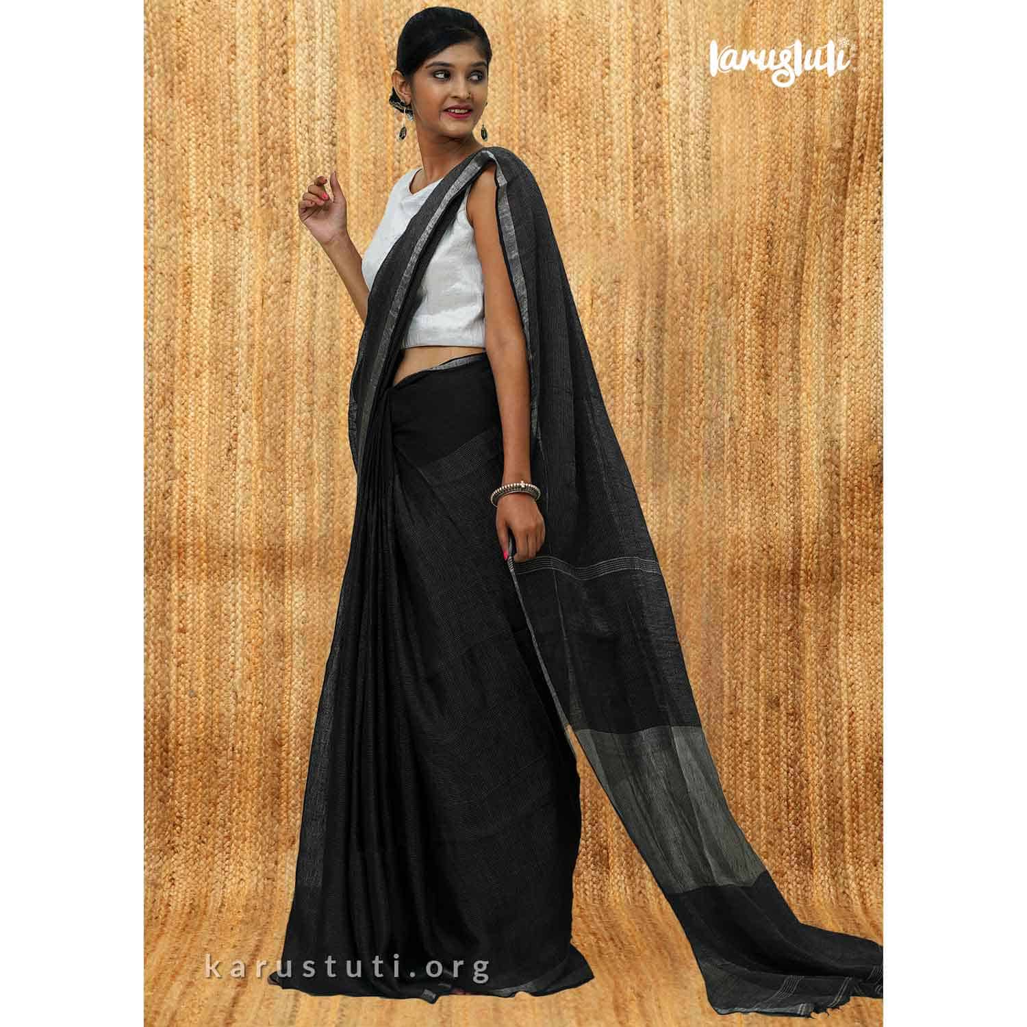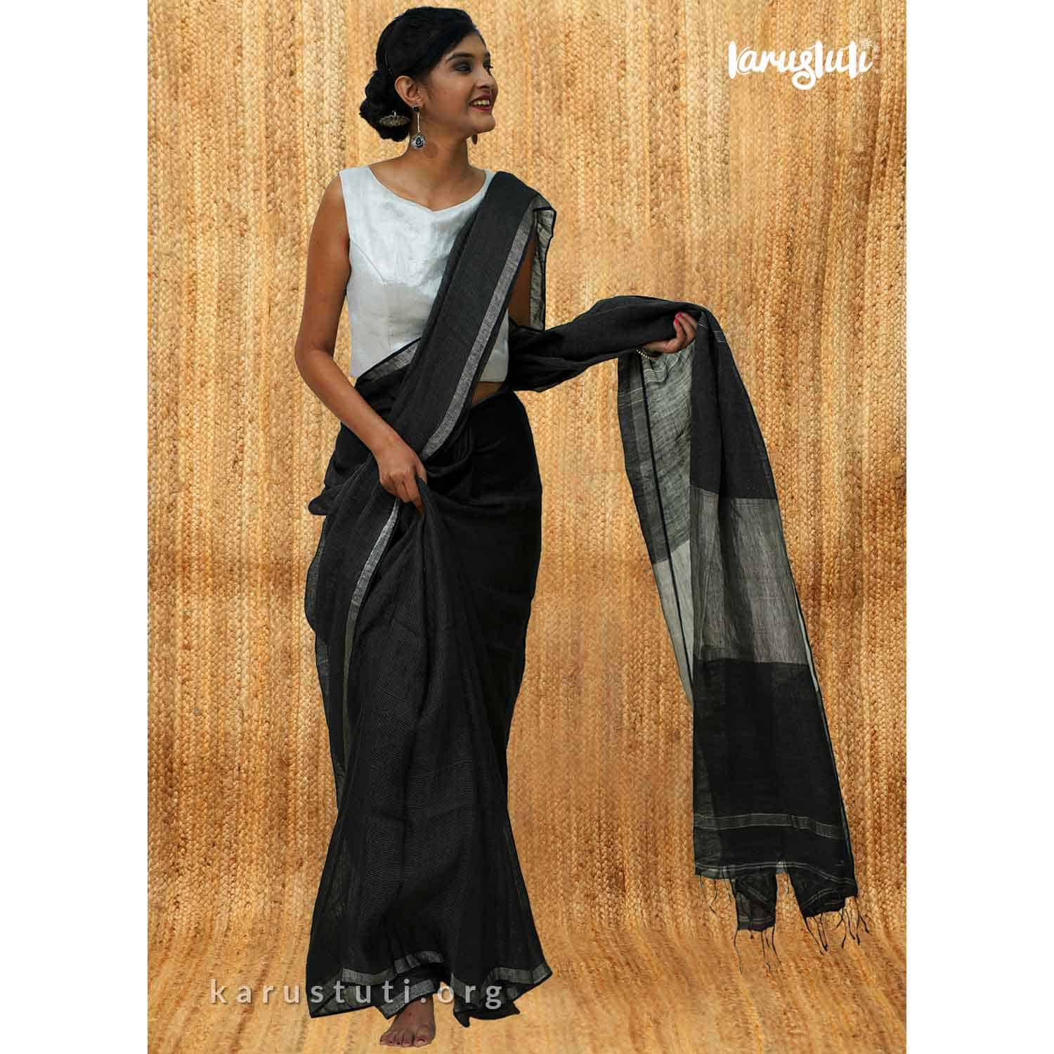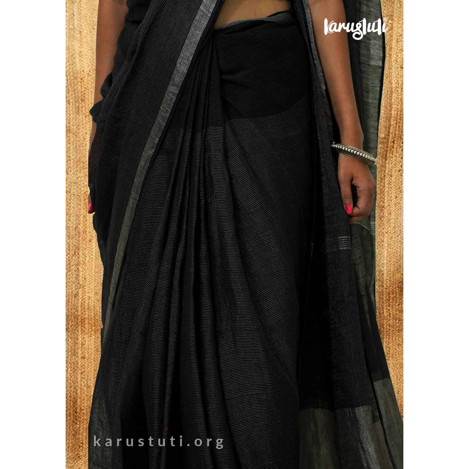 100 CNT linen handloom saree, all over the saree has vertical stripes with tested silk zari, with tissue pallu. AZO & PCP free natural dye, bright and luxurious look. Best for any time Occasion. Starch not require.