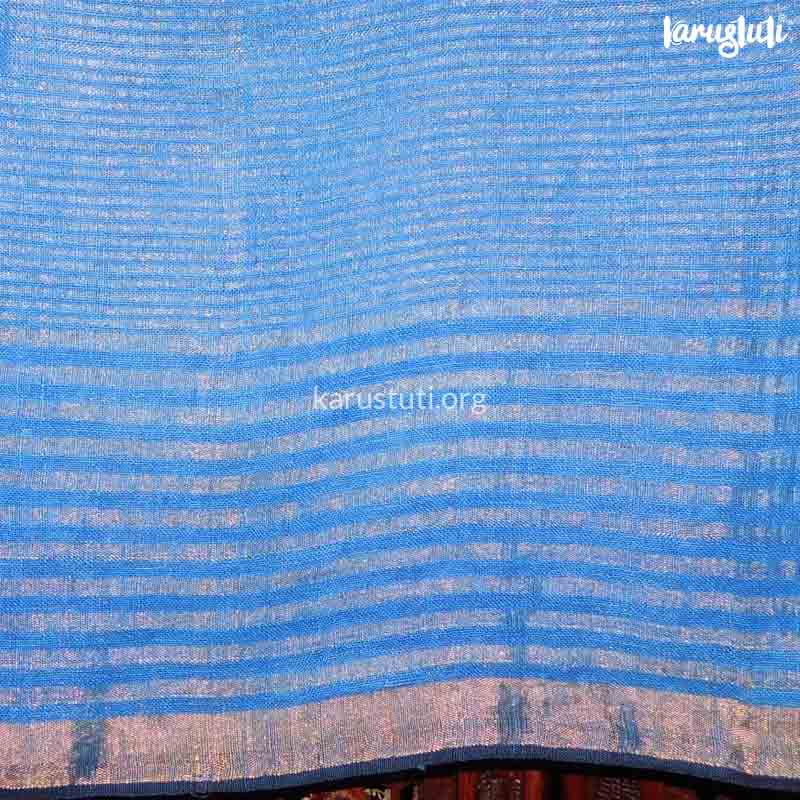 100cnt linen handloom saree, stripes woven in the weft with tested silk zari, and tissue pallu with Contrast selvage edge. AZO & PCP free natural dye, bright and luxurious look. Best for any time Occasion. Starch not require.